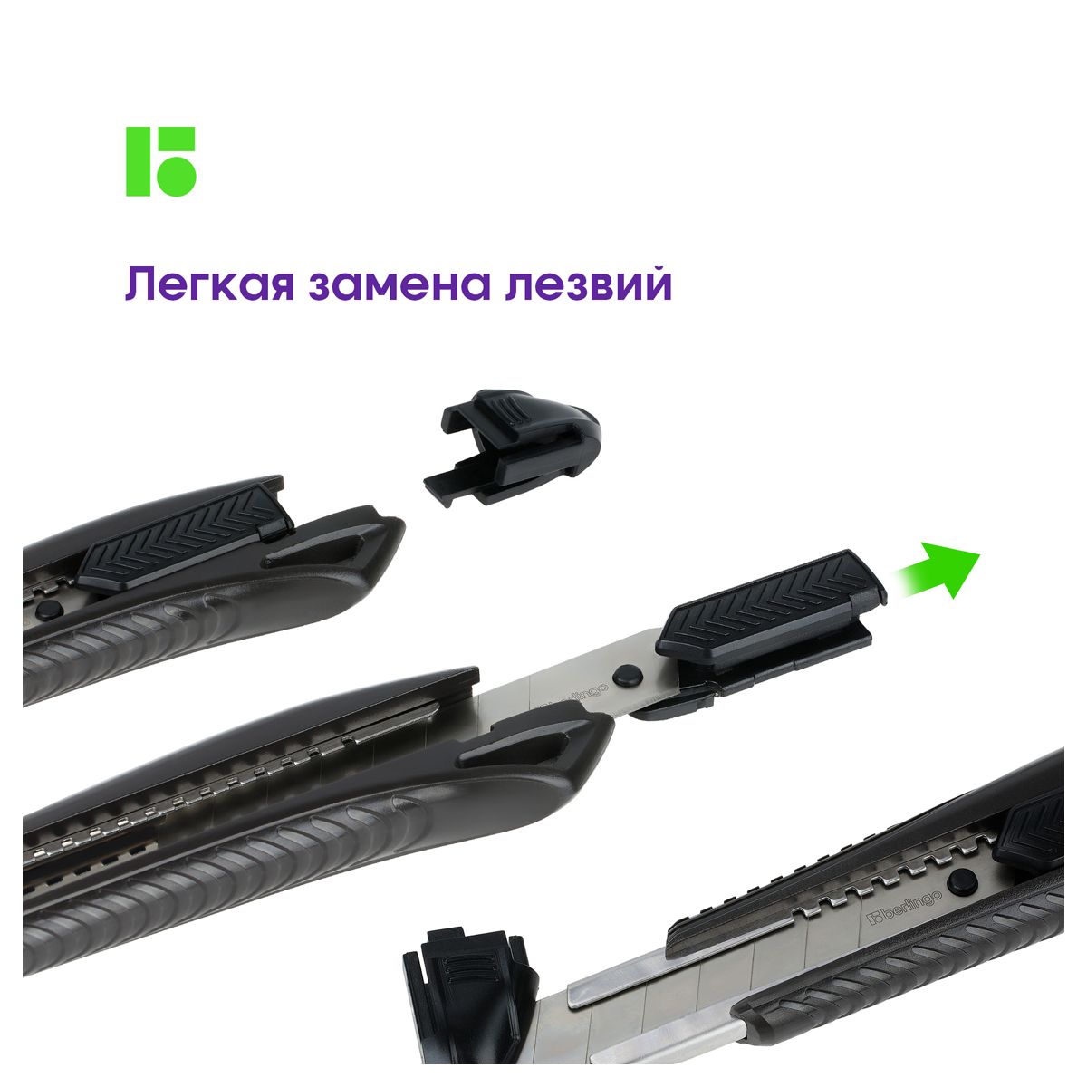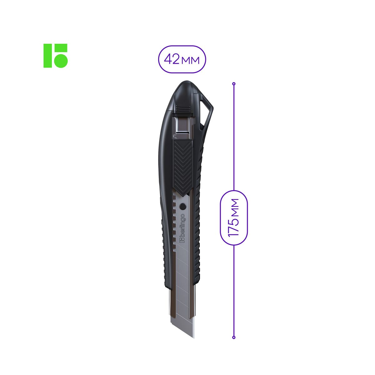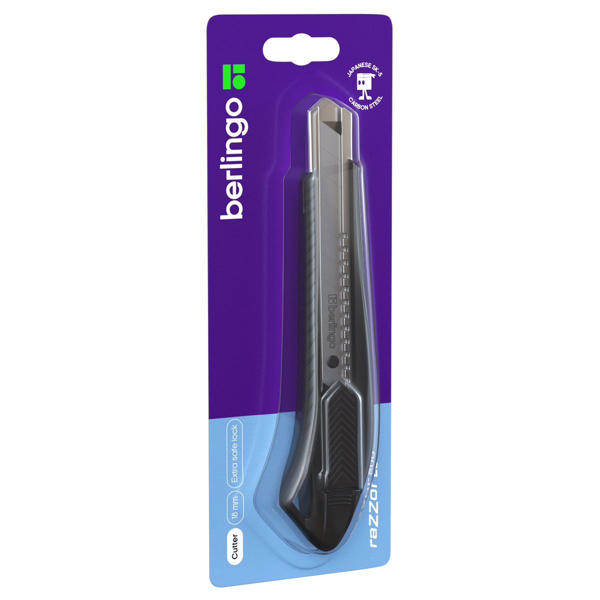 Нож канцелярский 18мм Berlingo "Razzor 200", auto-lock, металл. направл., черный, европодвес