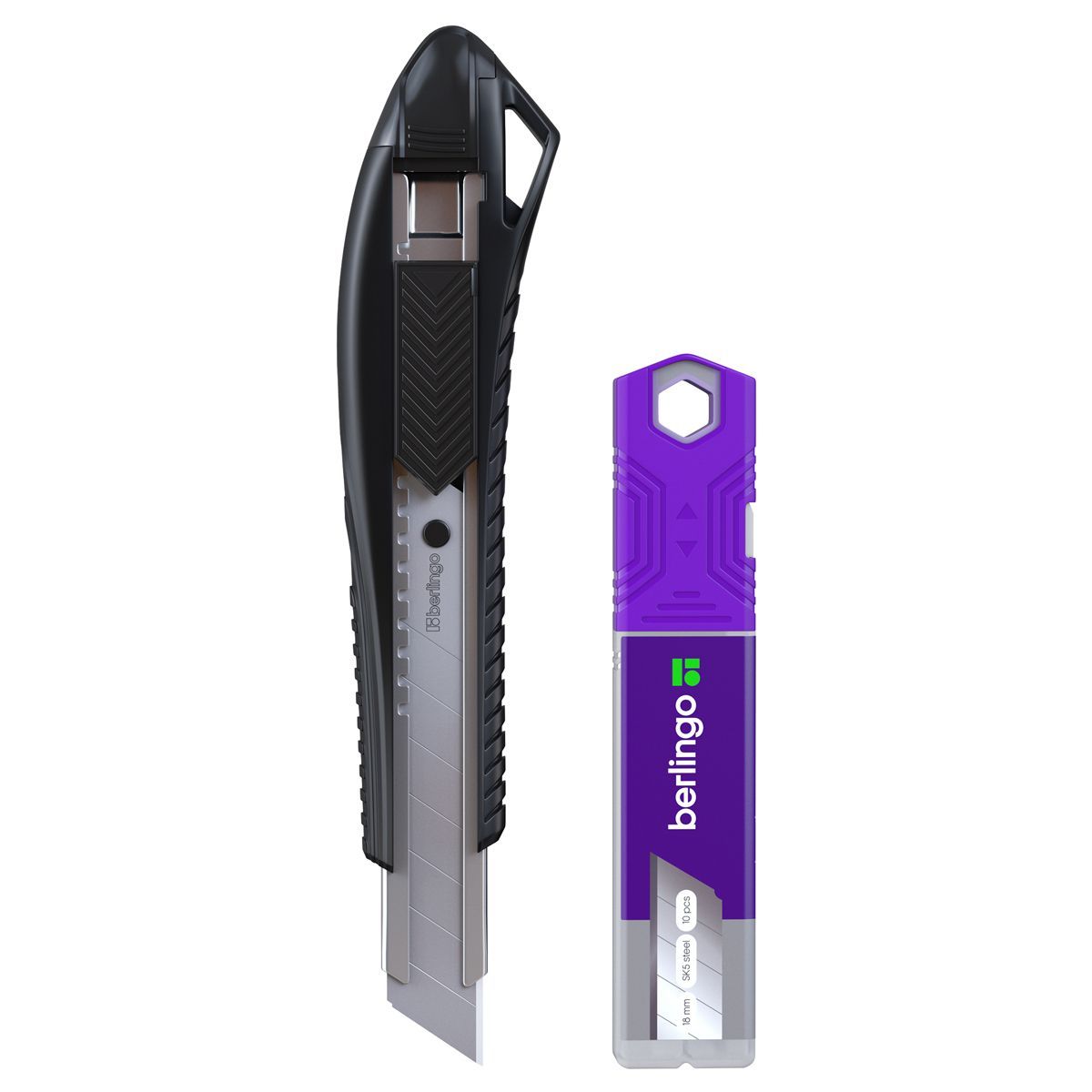 Нож канцелярский 18мм Berlingo "Razzor 200", черный + лезвия сменные 10шт., блистер, европодвес