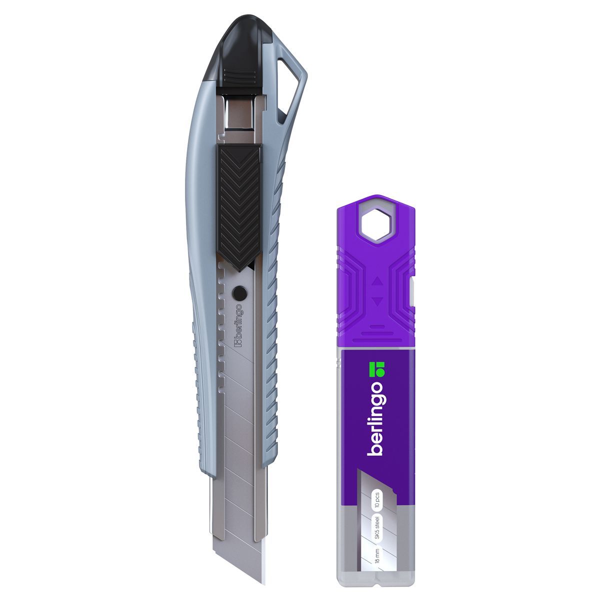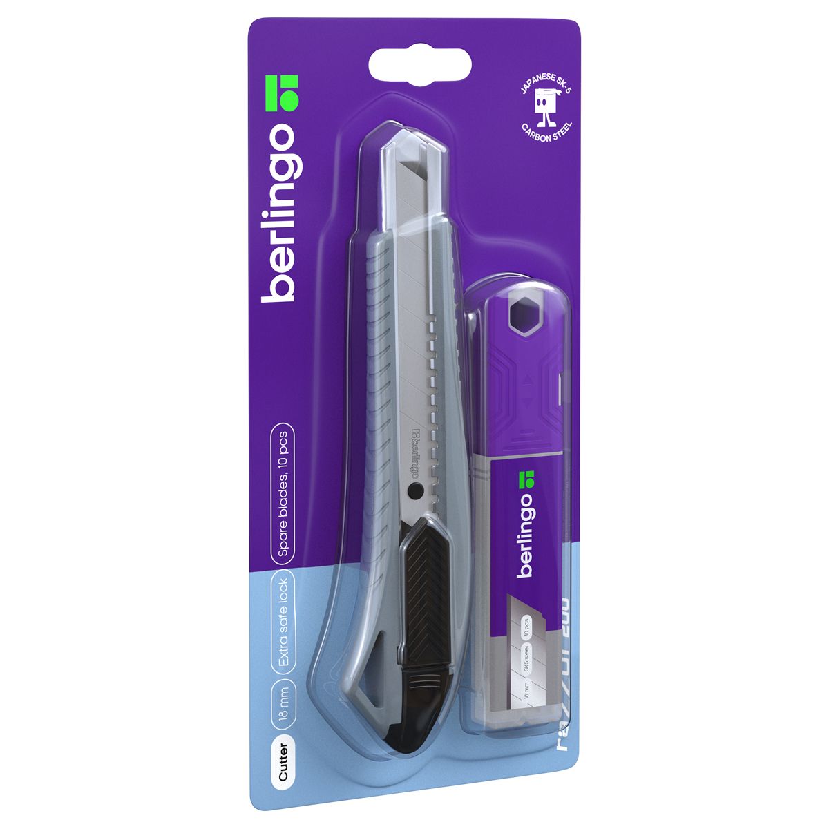 Нож канцелярский 18мм Berlingo "Razzor 200", серый + лезвия сменные 10шт., блистер, европодвес