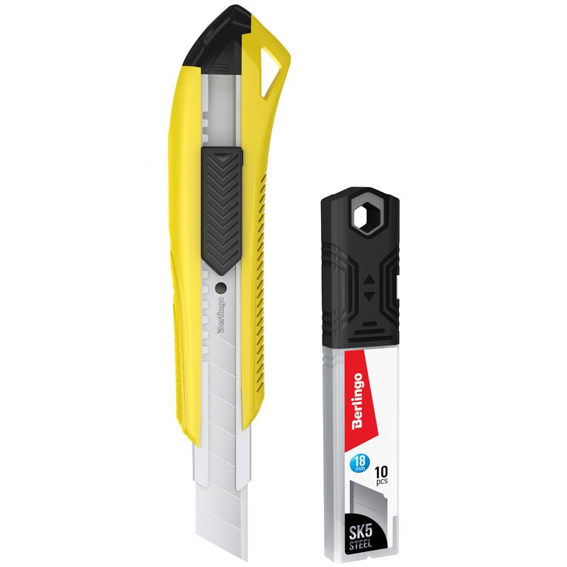 Нож канцелярский 18мм Berlingo "Razzor 200", желтый + лезвия сменные 10шт., блистер, европодвес