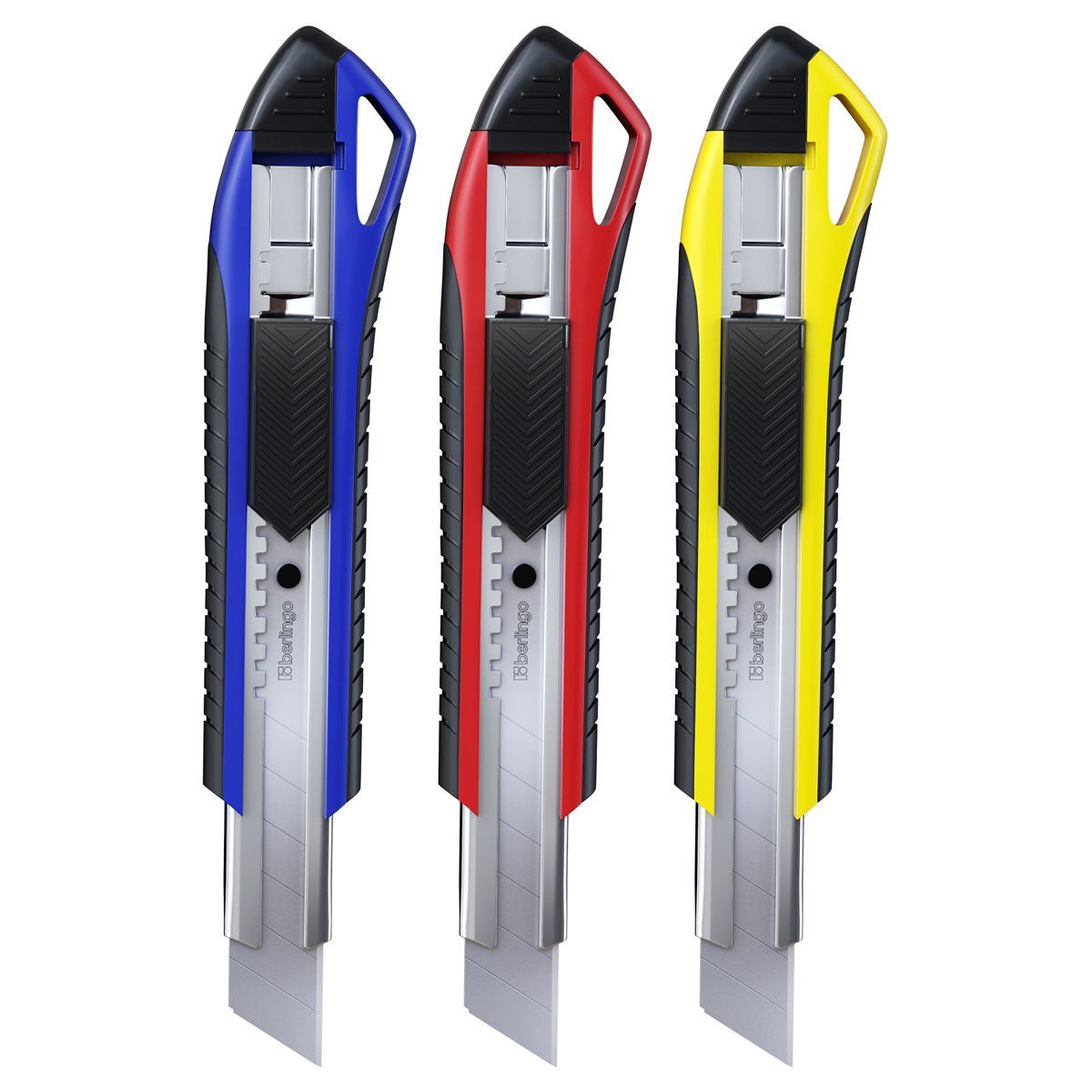 Нож канцелярский 18мм Berlingo "Razzor 300", auto-lock, металл. направл., мягкие вставки, ассорти, европодвес