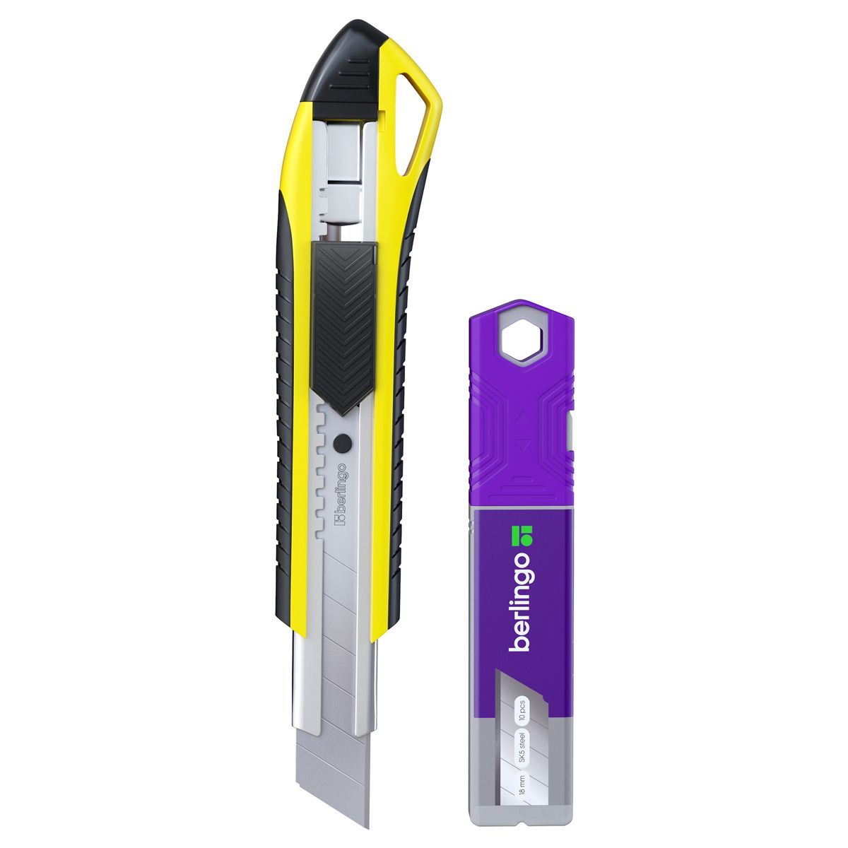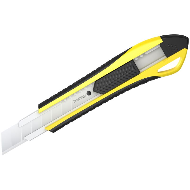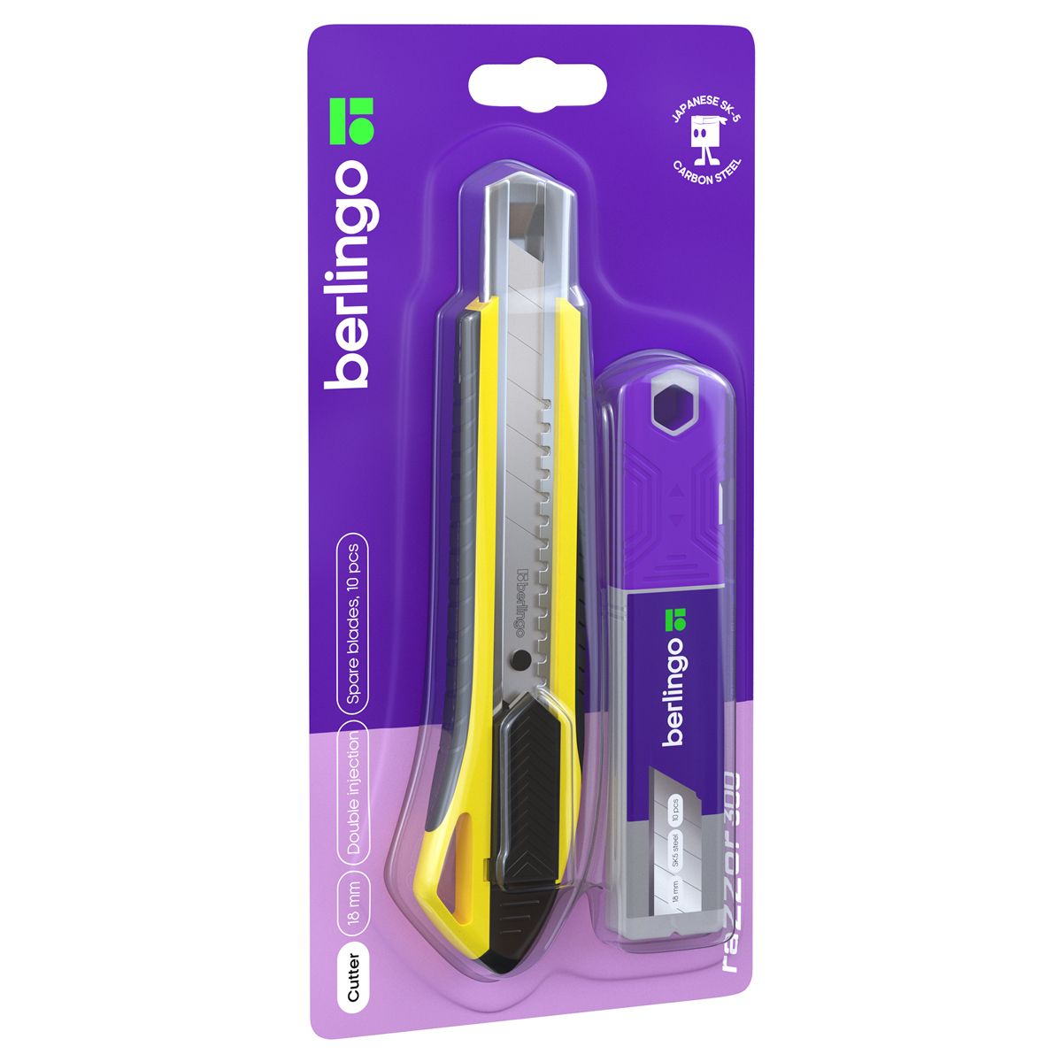 Нож канцелярский 18мм Berlingo "Razzor 300", желтый + лезвия сменные 10шт., блистер, европодвес