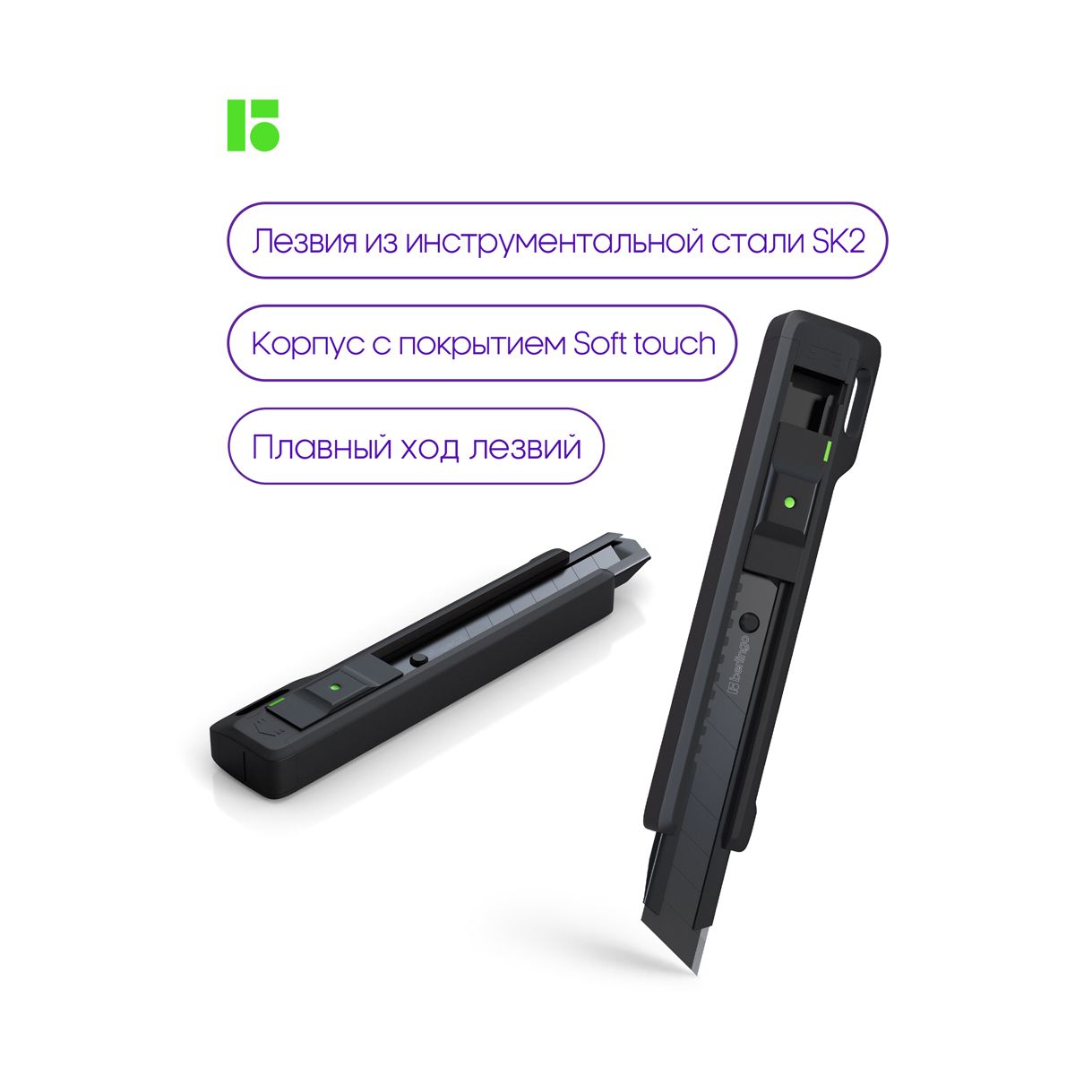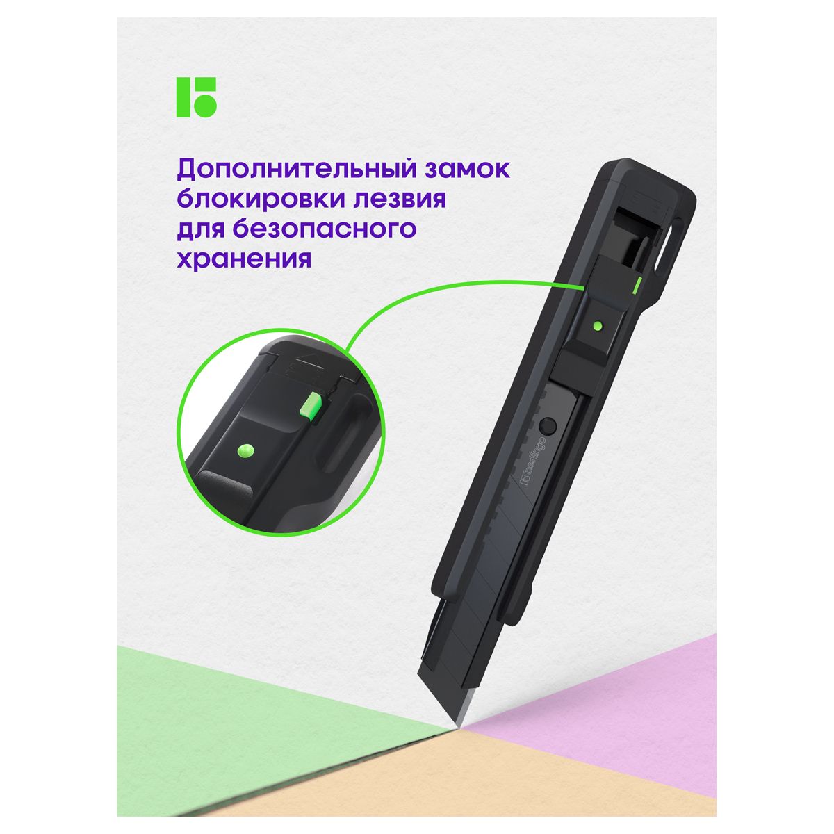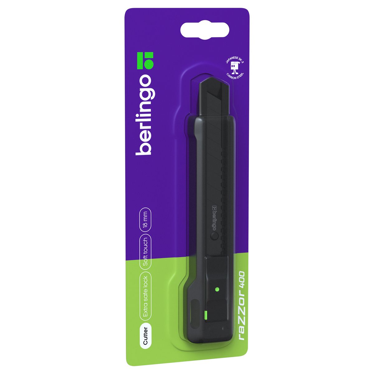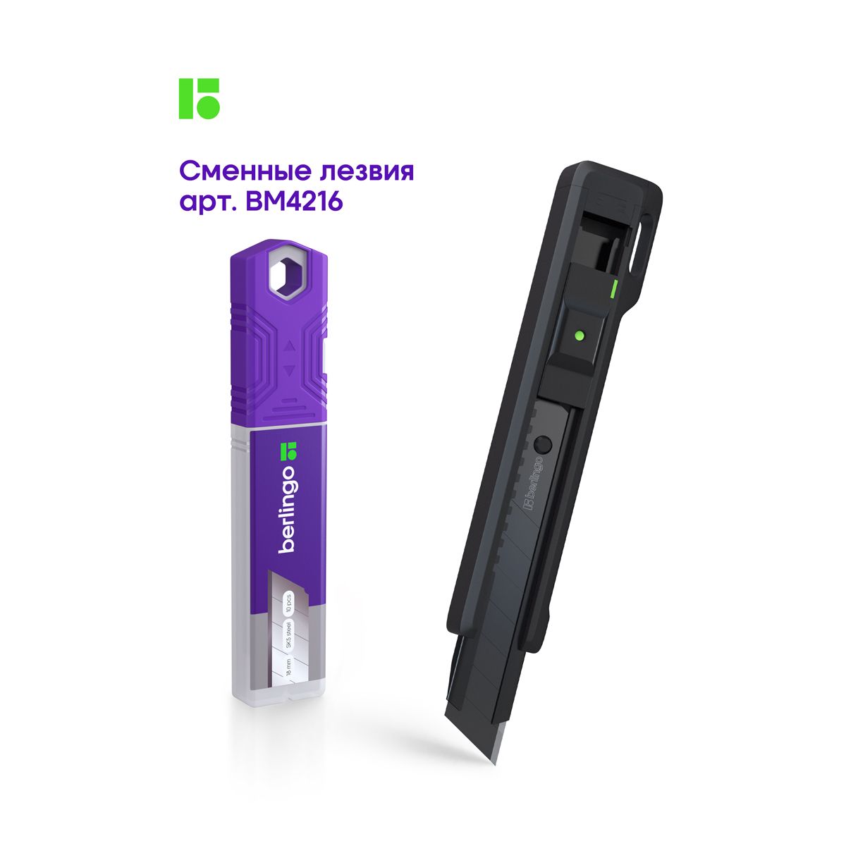 Нож канцелярский 18мм Berlingo "Razzor 400", черное лезвие, auto-lock, металл. направл., европодвес
