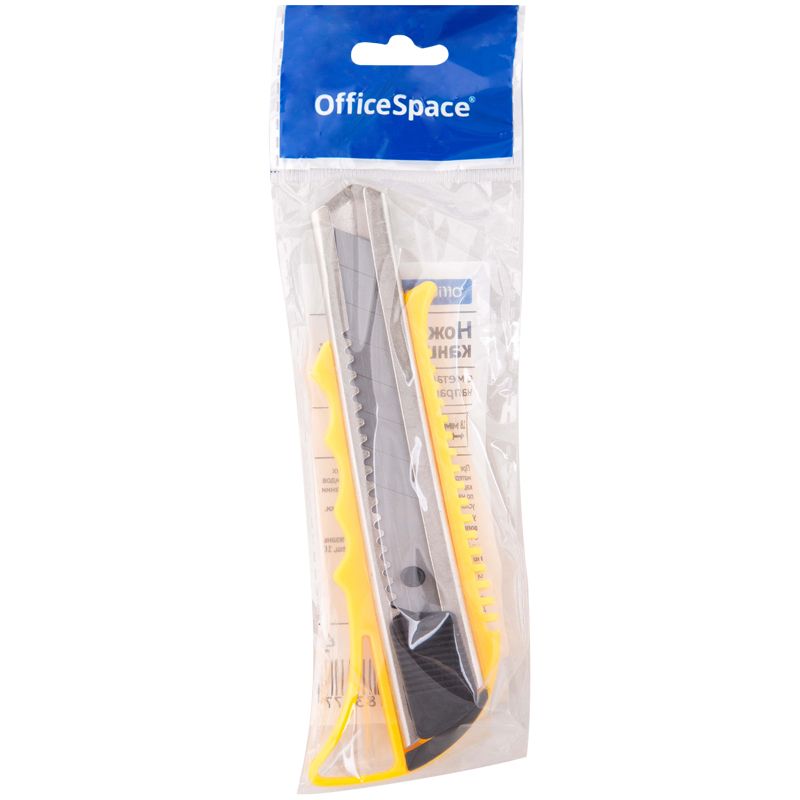 Нож канцелярский 18мм OfficeSpace, усиленный, с фиксатором, металл. направляющие, ассорти, европодвес