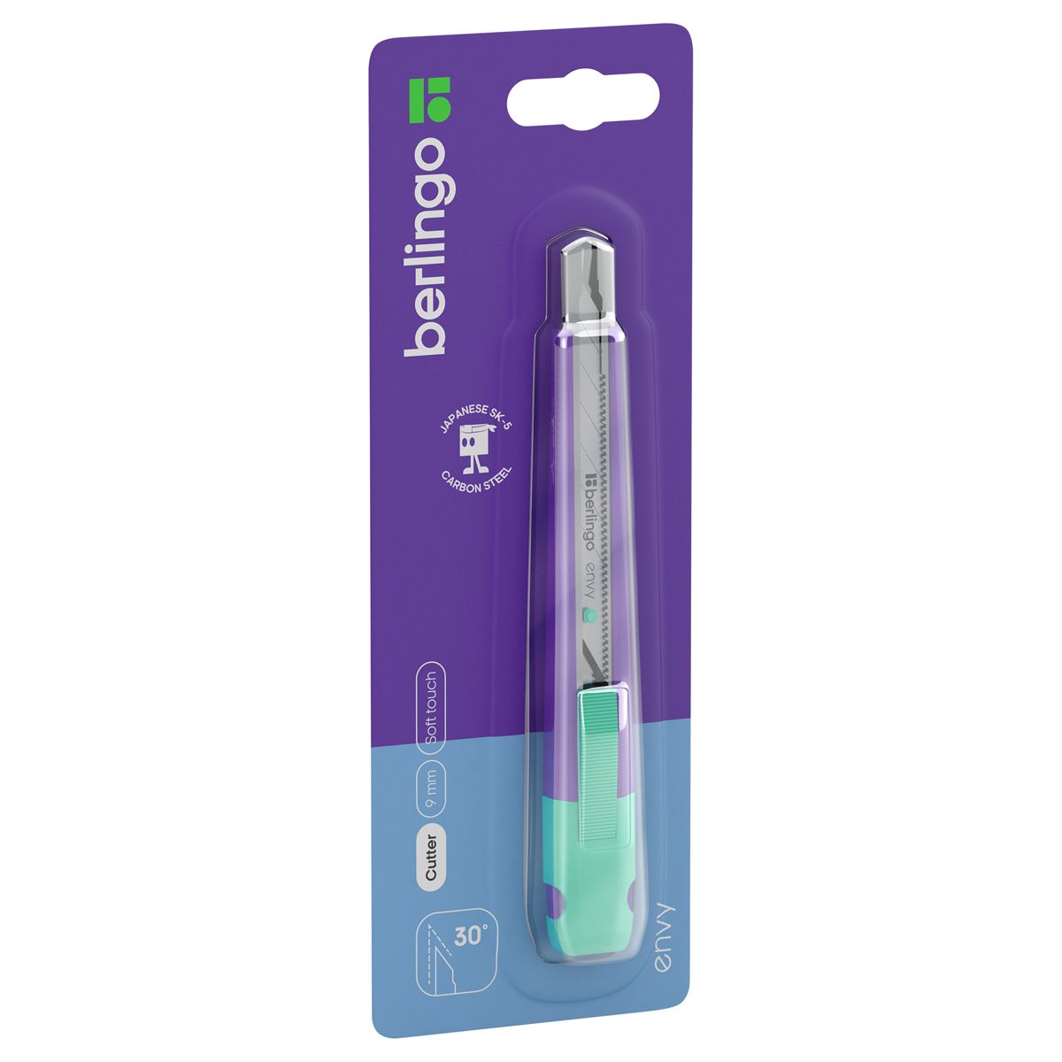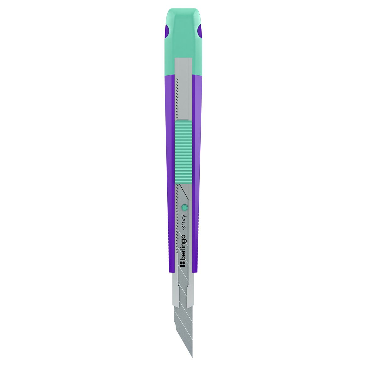 Нож канцелярский 9мм Berlingo "Envy", auto-lock, металл. направл., зеленый, европодвес