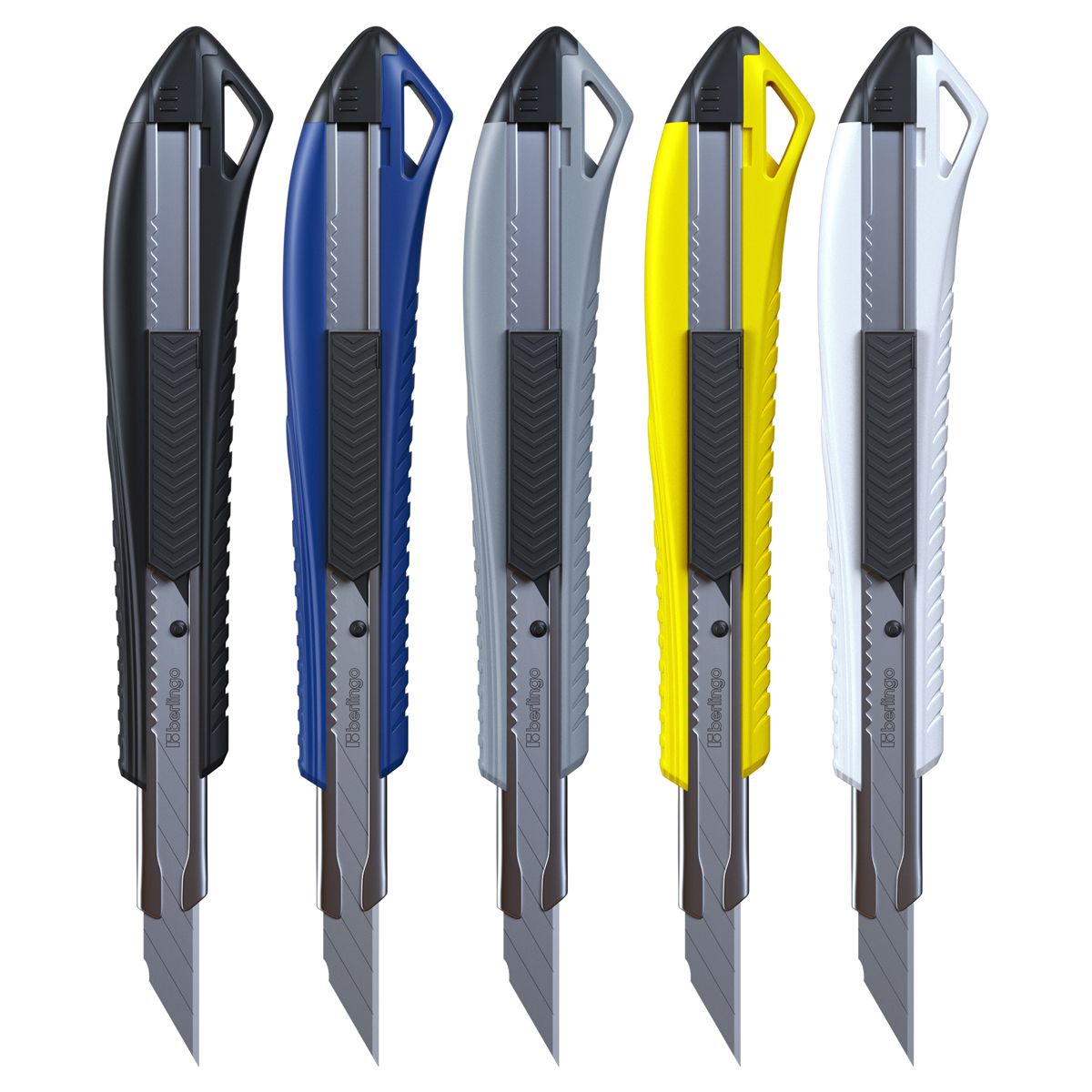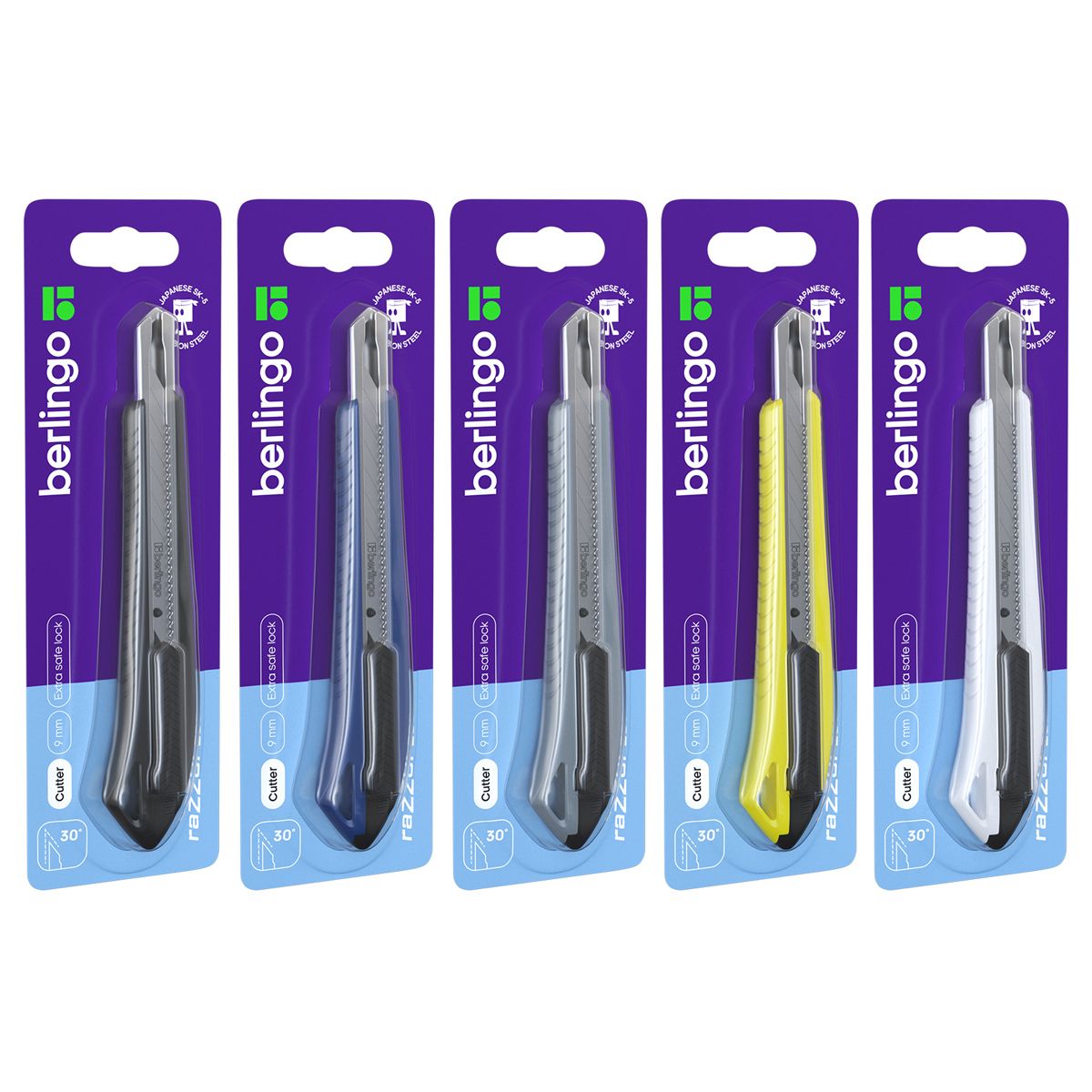 Нож канцелярский 9мм Berlingo "Razzor 200", auto-lock, металл. направл., ассорти, европодвес