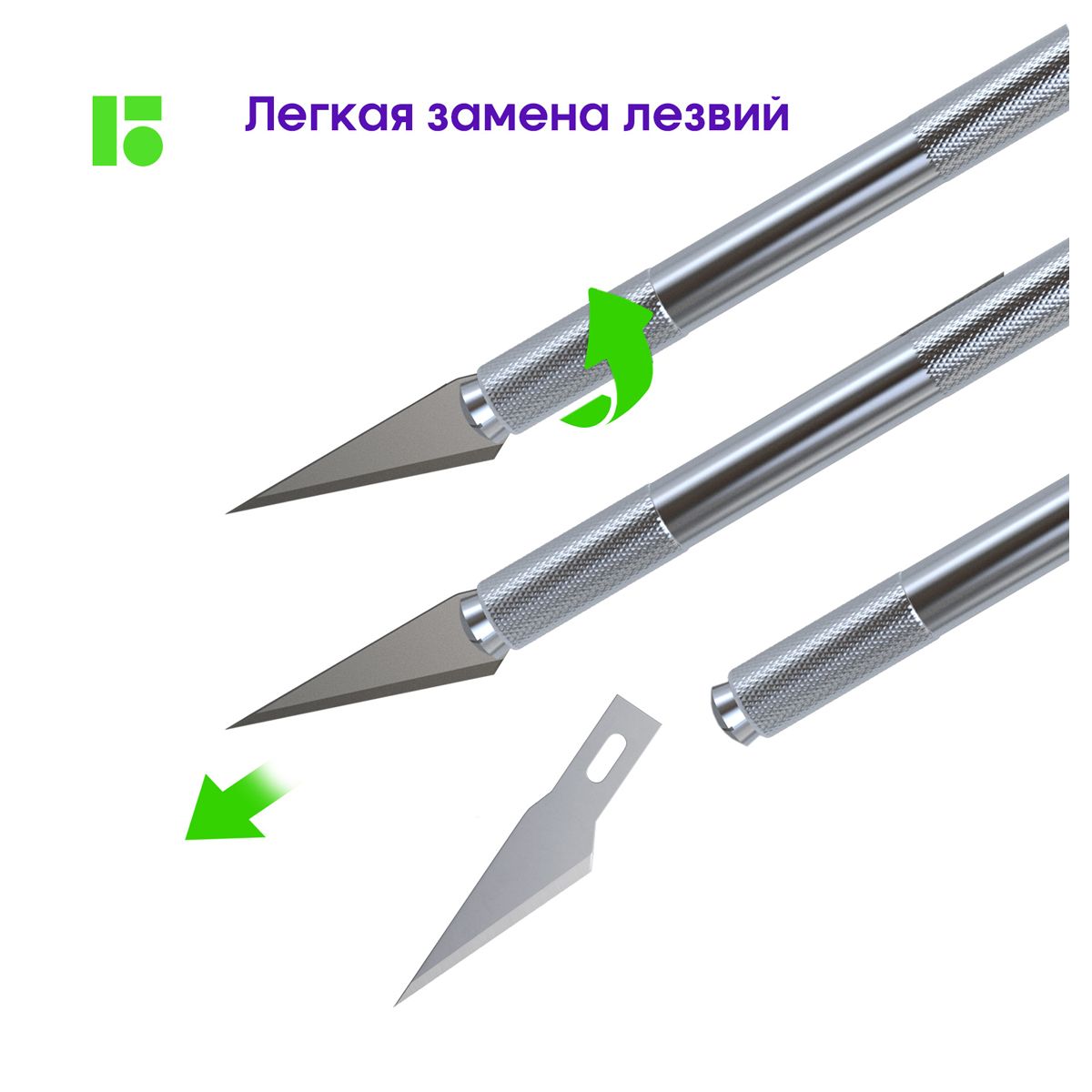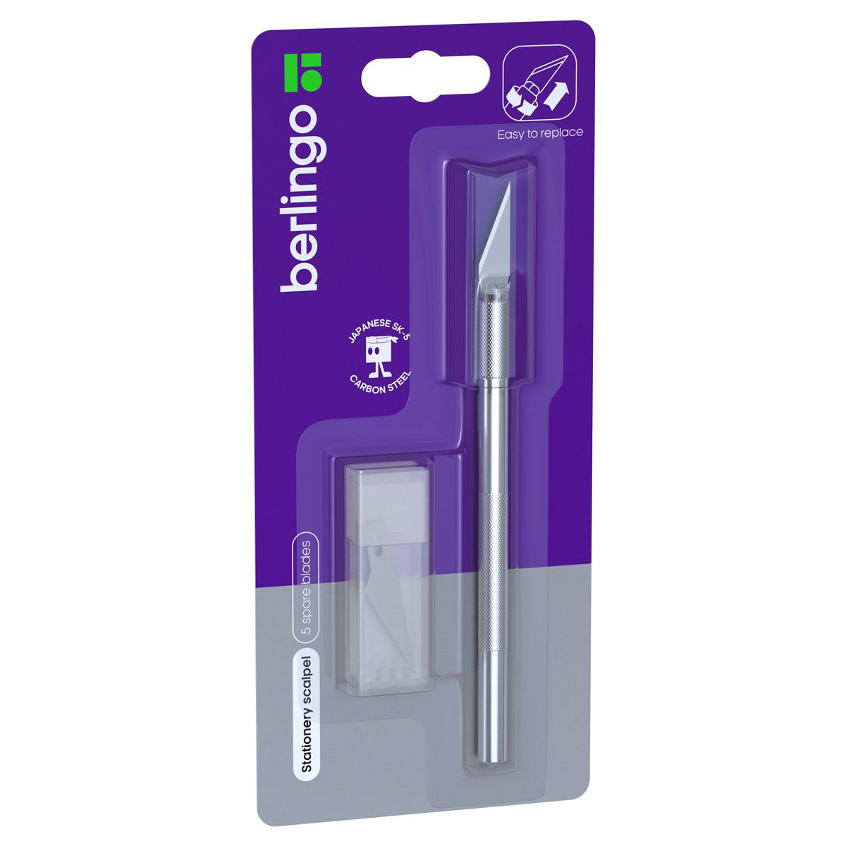 Нож-скальпель канцелярский Berlingo, металлический корпус, 5 лезвий в комплекте, европодвес