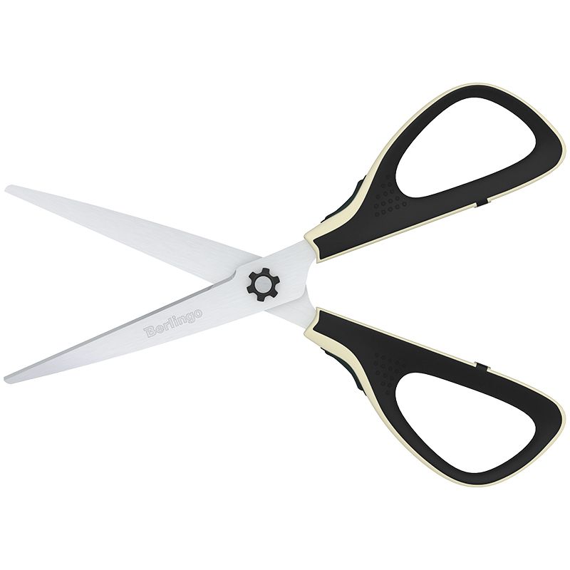 Ножницы Berlingo "Easycut 300", 19см, белые, мягкие вставки, европодвес