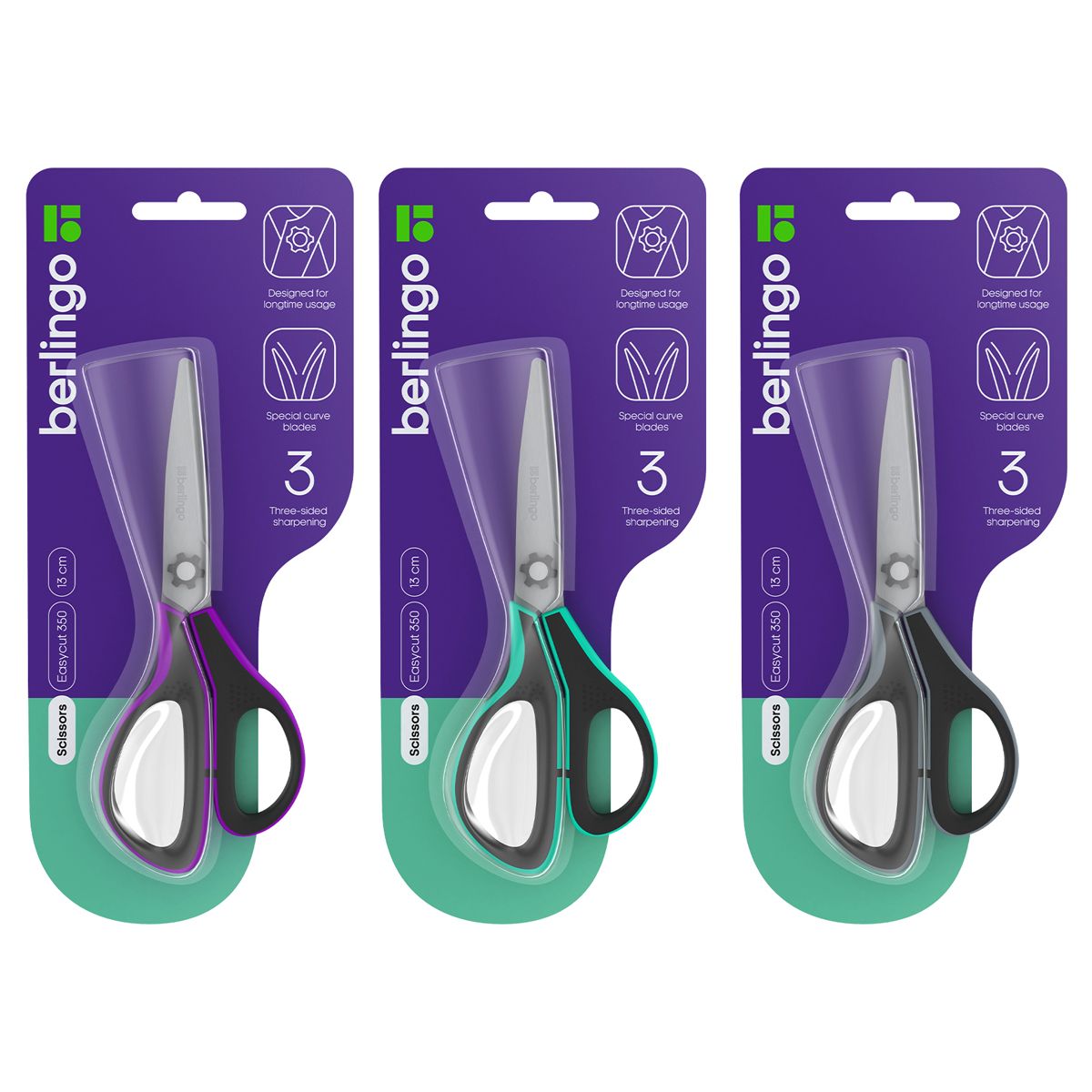 Ножницы Berlingo "Easycut 350", 13см, ассорти, эргономичные ручки, мягкие вставки, европодвес