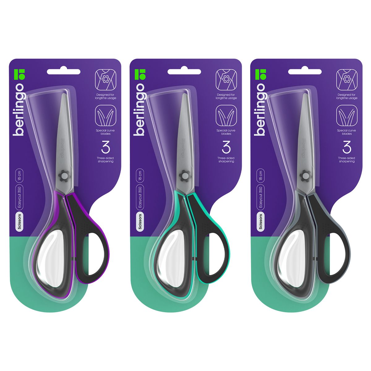 Ножницы Berlingo "Easycut 350", 18см, ассорти, эргономичные ручки, мягкие вставки, европодвес