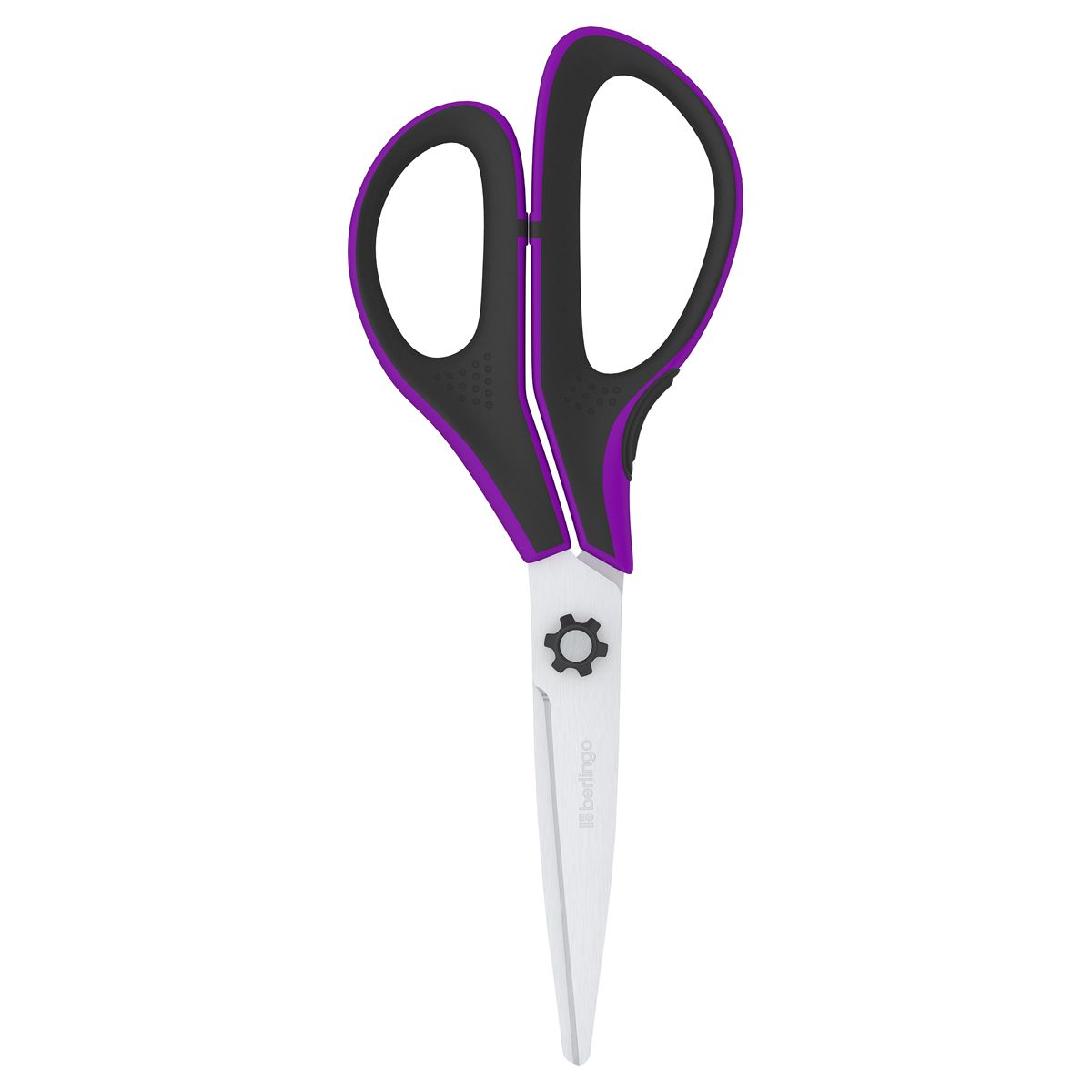Ножницы Berlingo "Easycut 350", 18см, сиреневые, эргономичные ручки, мягкие вставки, европодвес