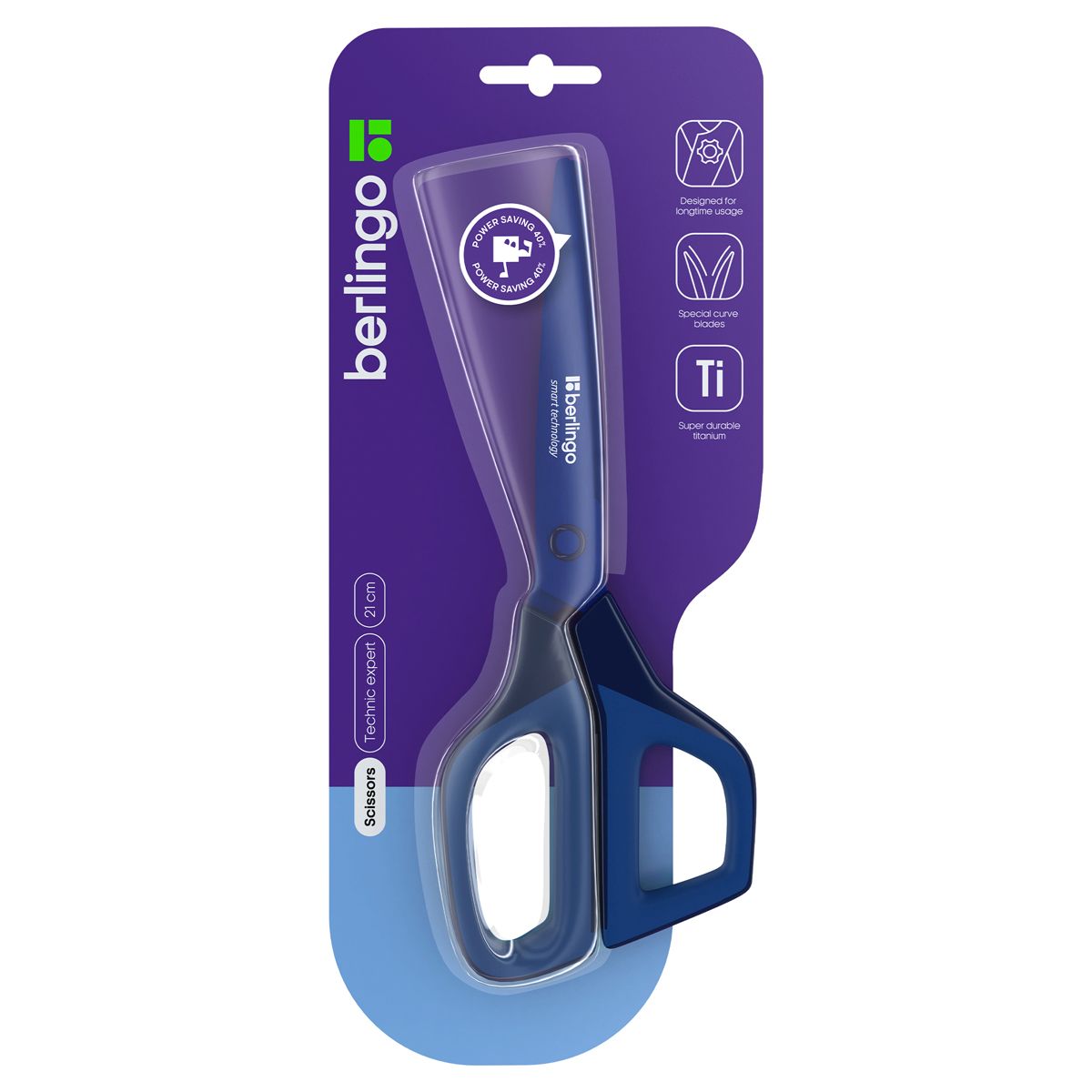 Ножницы Berlingo "Technic Expert", 21см, синие, лезвия с титановым покрытием, эргономичные ручки, мягкие вставки, европодвес