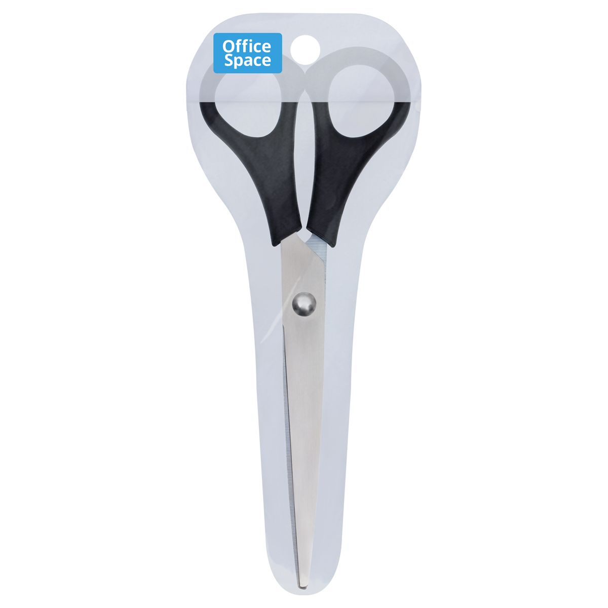 Ножницы OfficeSpace 16,2см, черные ручки, ПВХ чехол с европодвесом