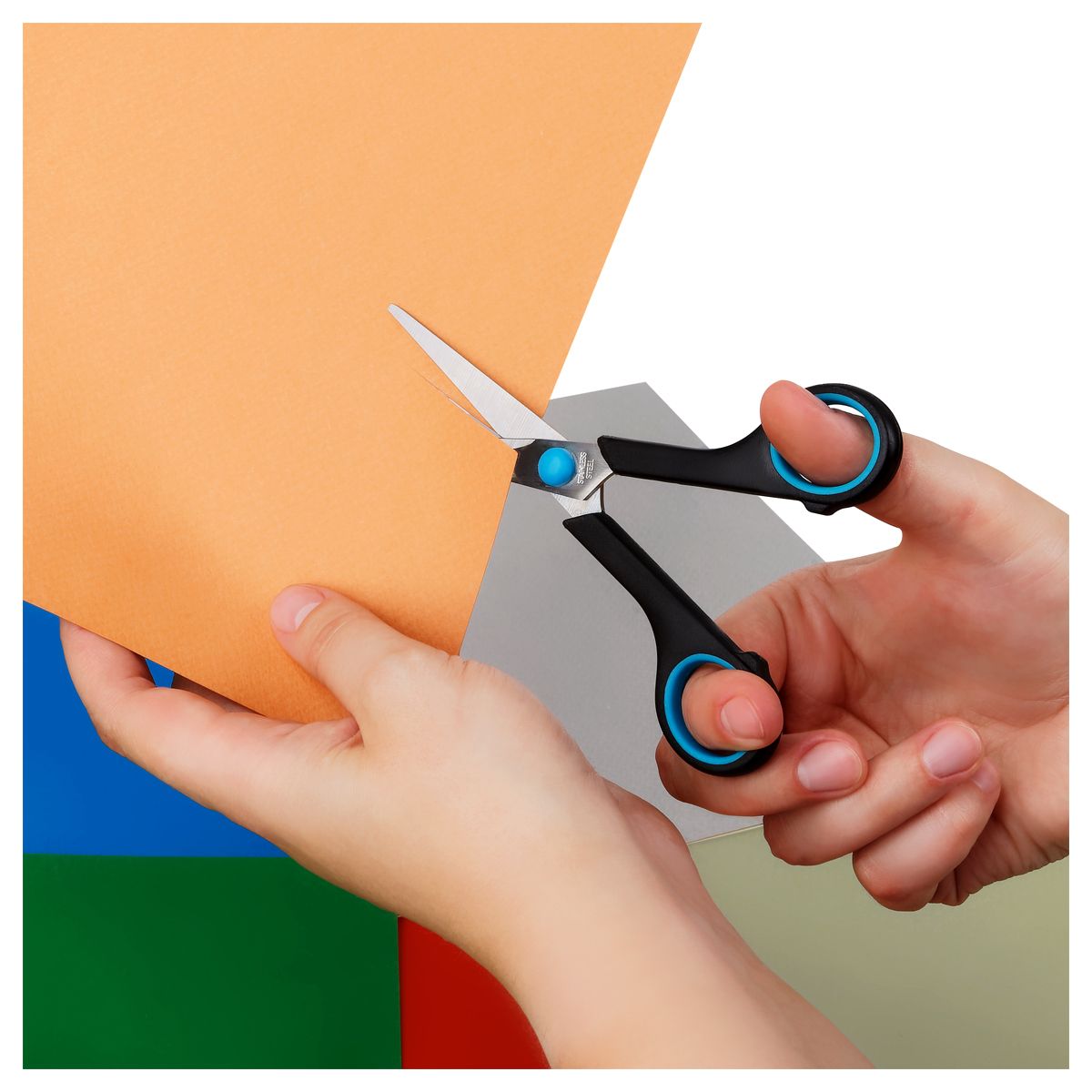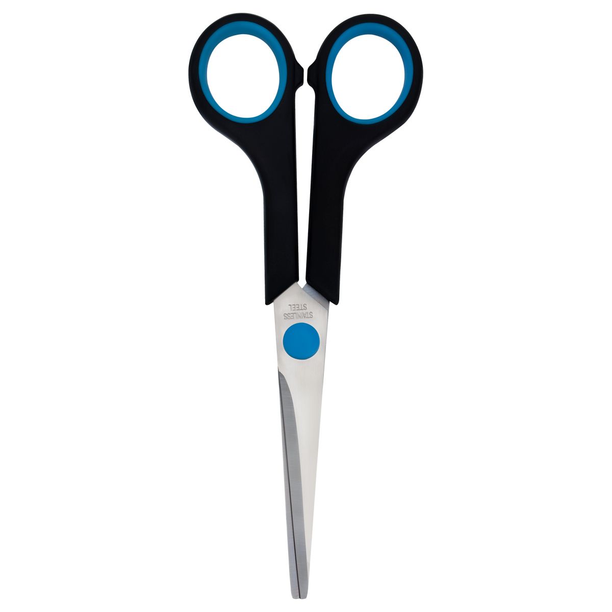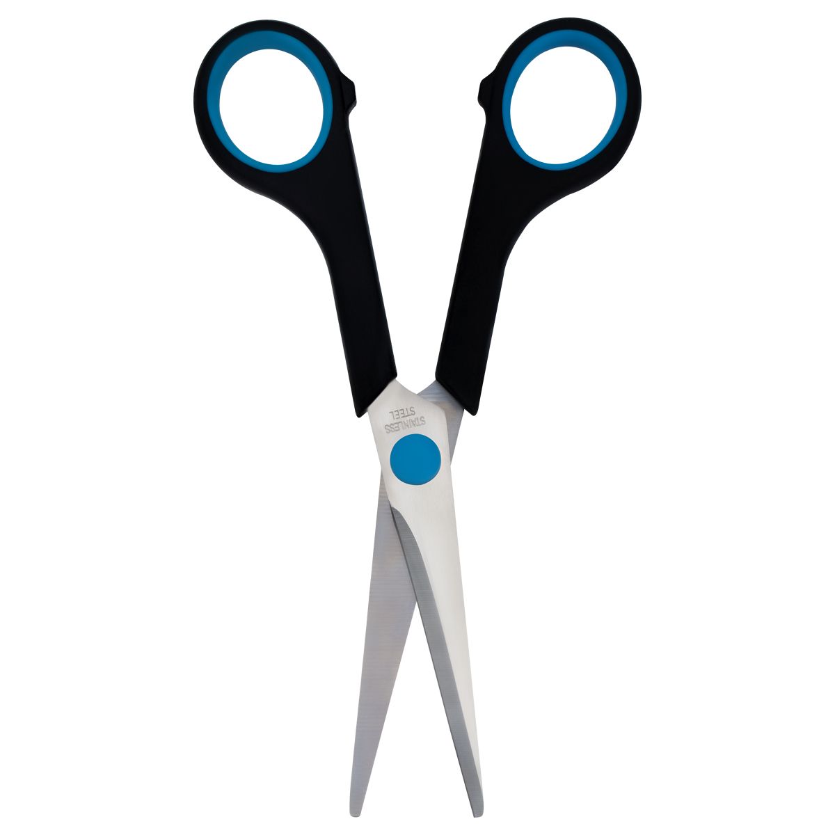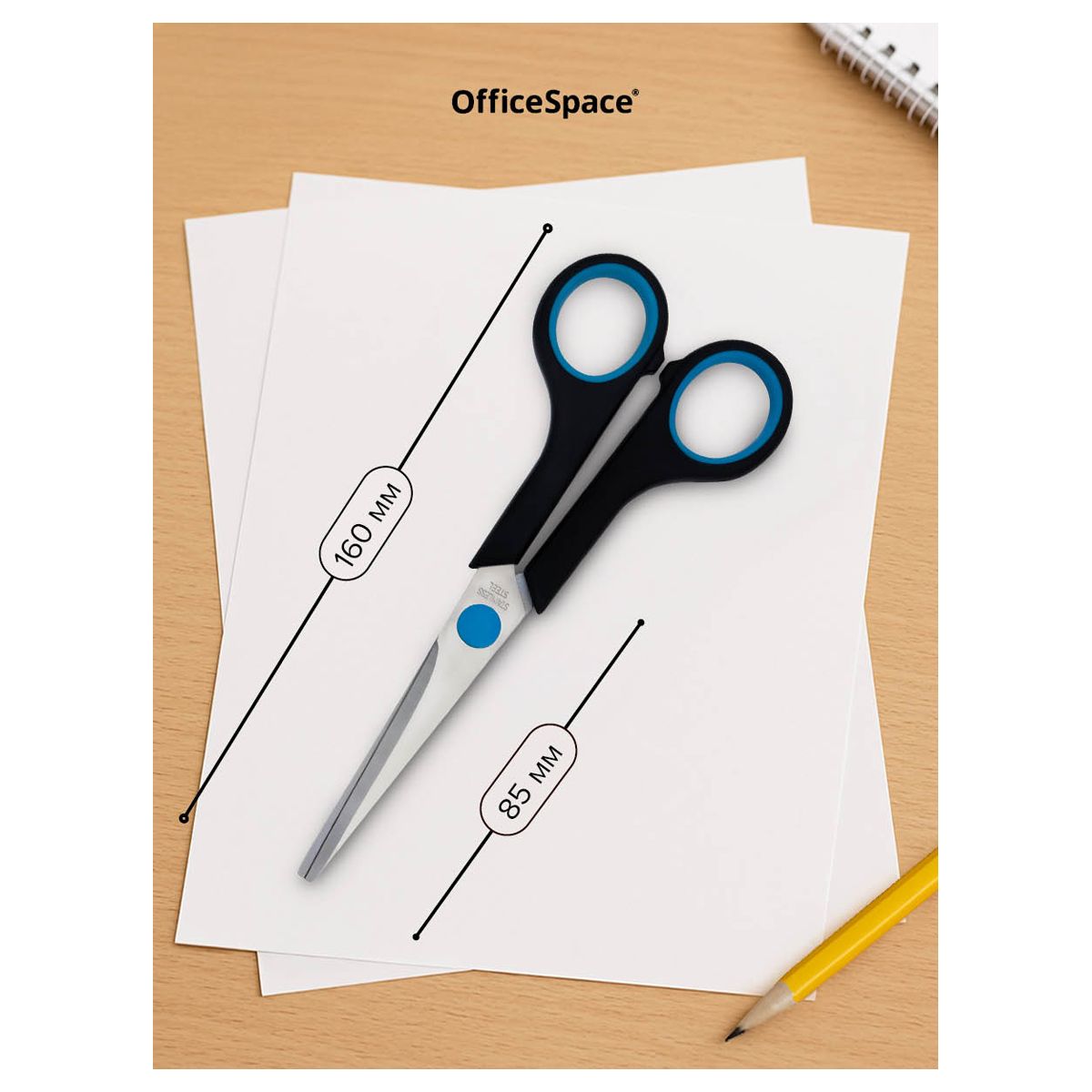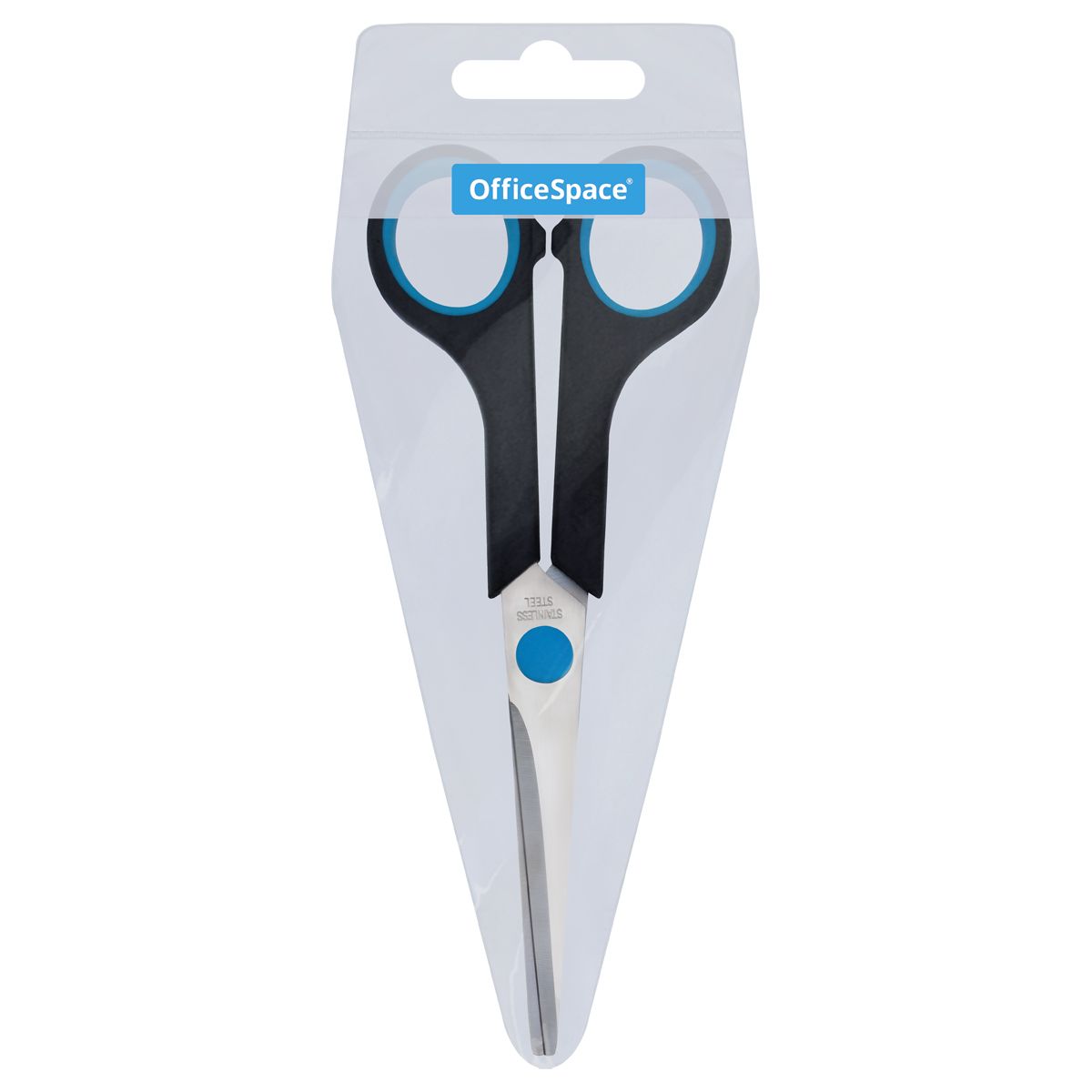 Ножницы OfficeSpace 16см, черные с синими вставками, ПВХ чехол с европодвесом