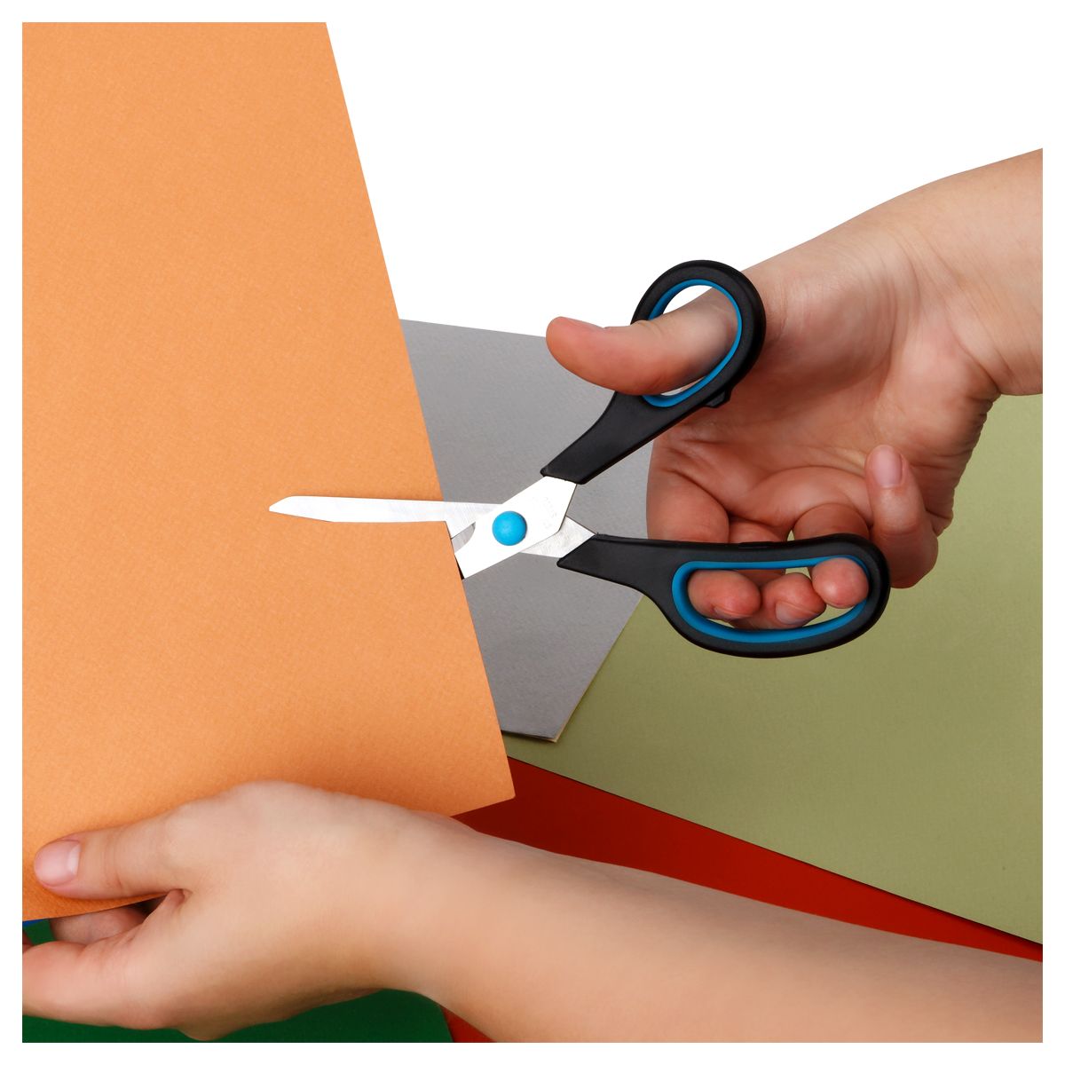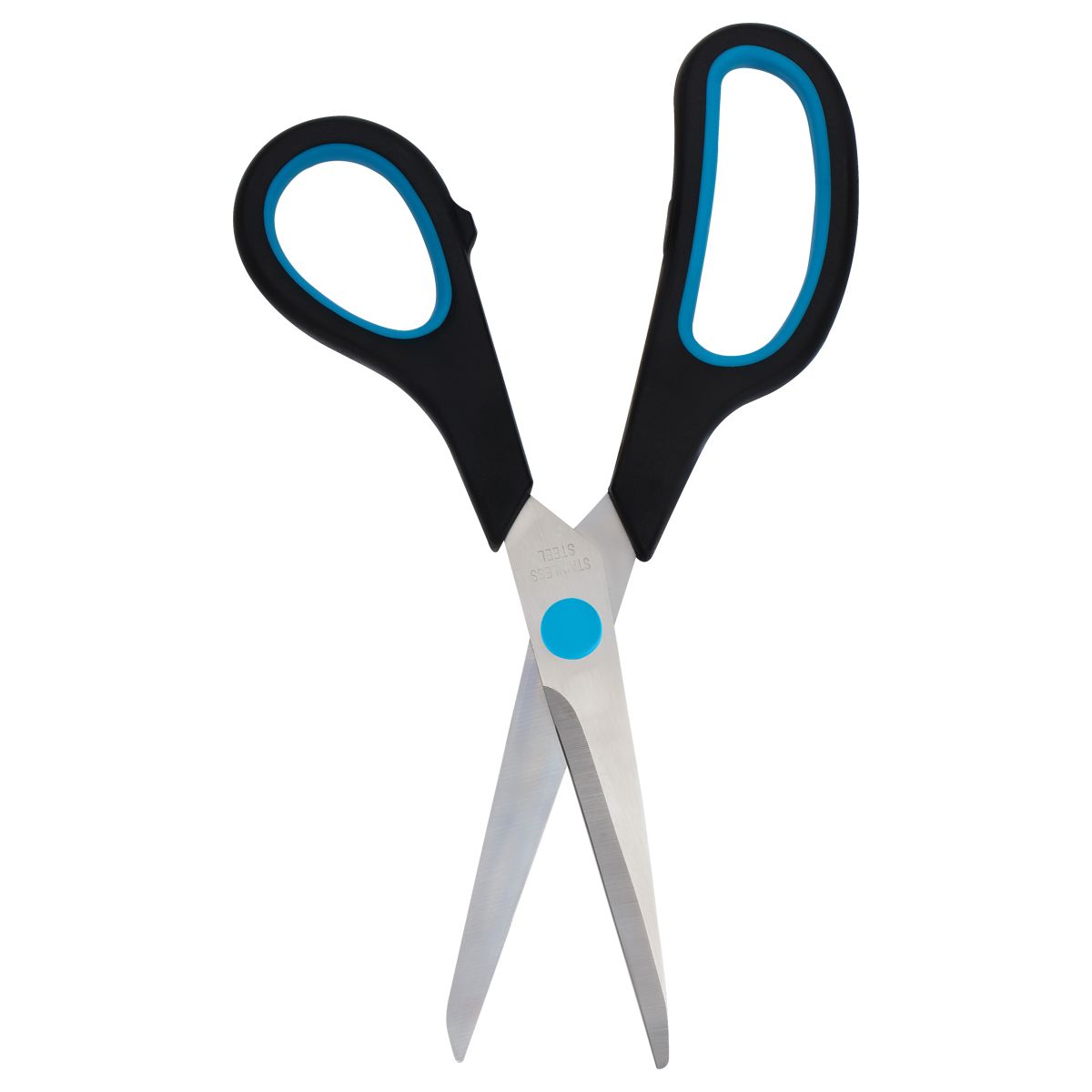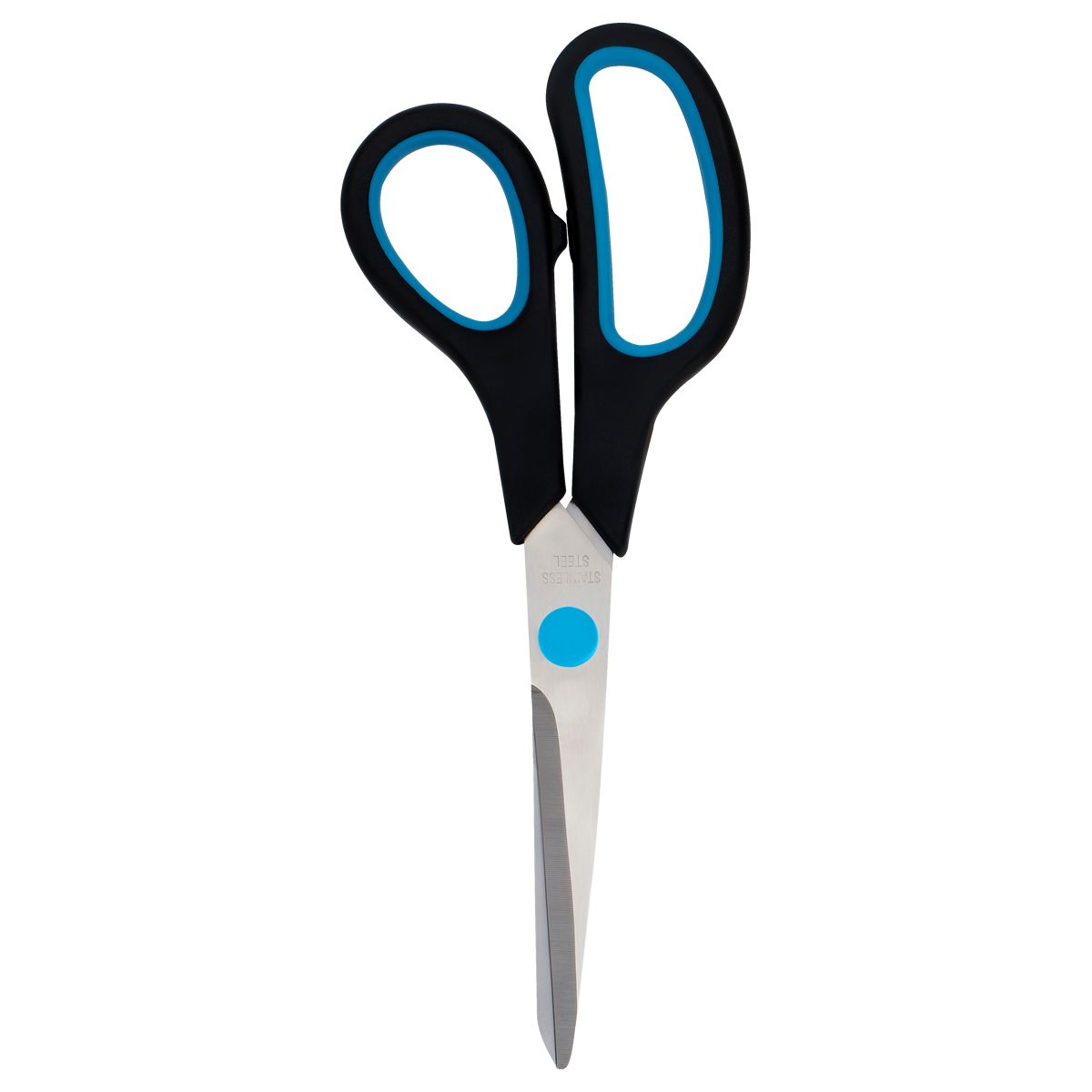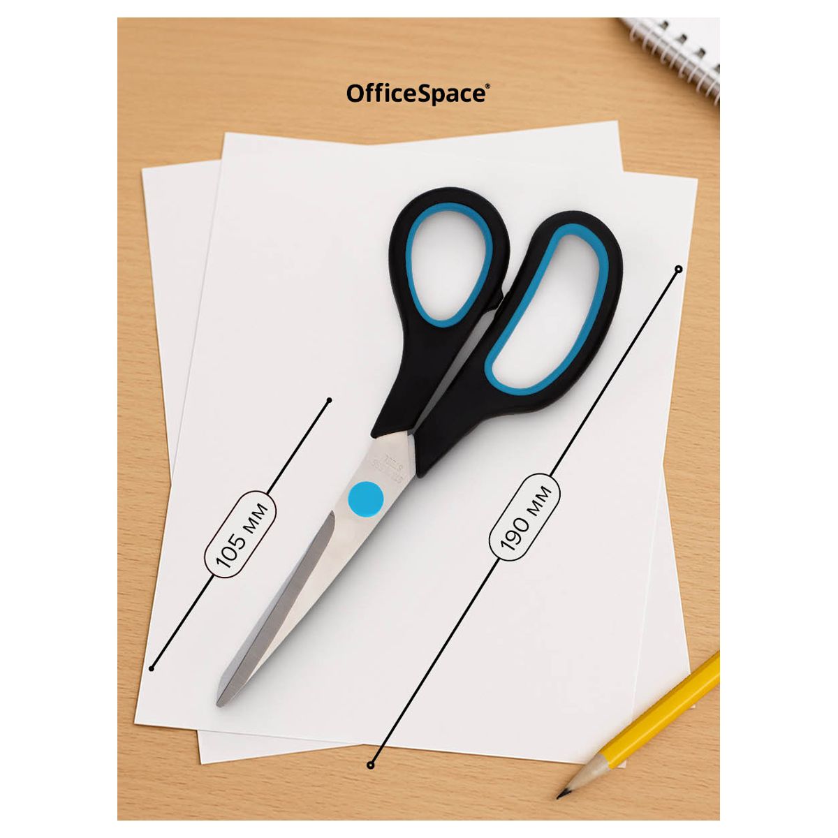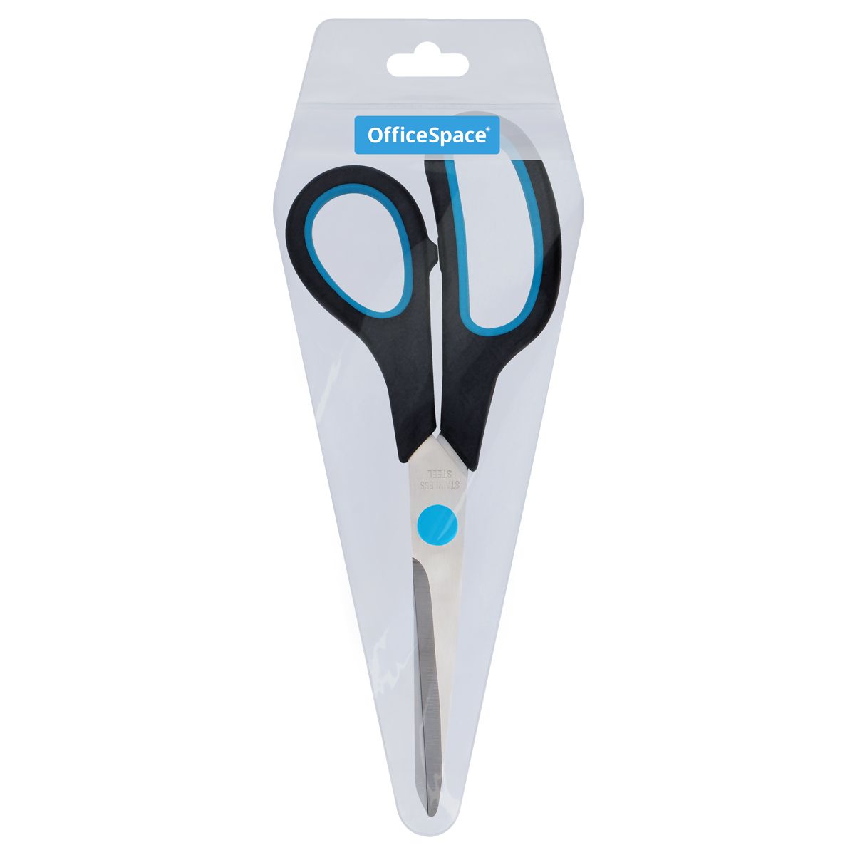 Ножницы OfficeSpace 19см, эргономичные ручки, черные с синими вставками, ПВХ чехол с европодвесом