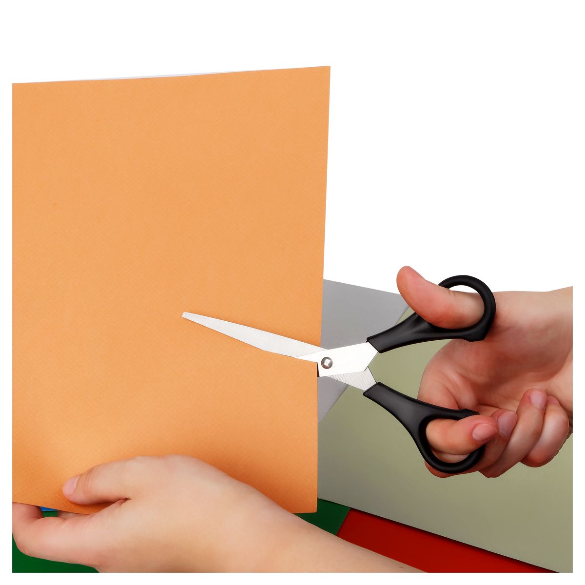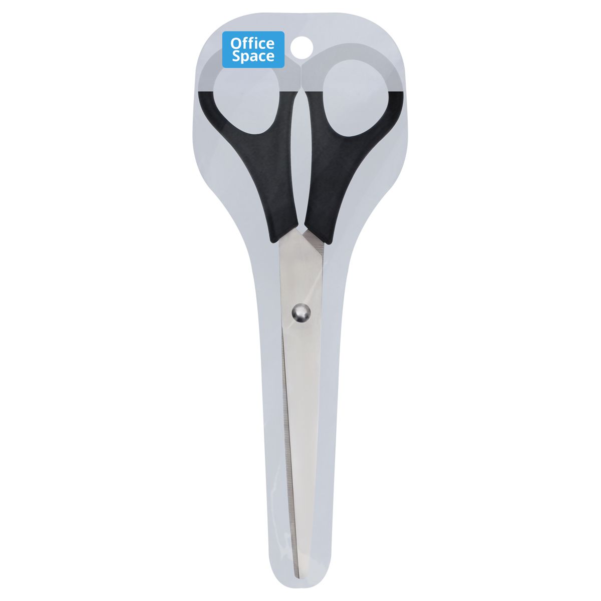Ножницы OfficeSpace 20см, черные ручки, ПВХ чехол с европодвесом