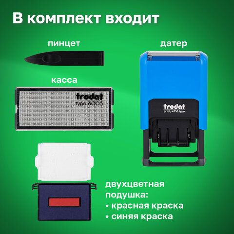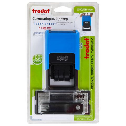 Датер самонаборный, 2 строки + дата, оттиск 41х24 мм, сине-красный, TRODAT 4750, касса в комплекте, 4755