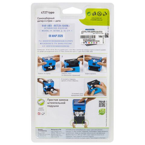 - Самонаборный датер Trodat 4727 с автоматической оснасткой.