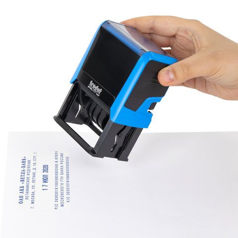 - Встроенная оснастка с чернильным механизмом даёт тысячи чётких отпечатков.