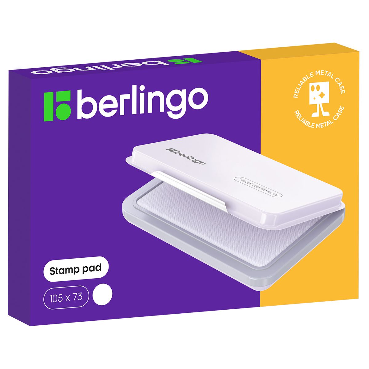 Штемпельная подушка Berlingo размером 105 × 73 мм — в прочном металлическом корпусе с цветовой индикацией. Предназначена для ручных оснасток, не содержит чернил (требуется заправка), упакована в индивидуальную коробочку.