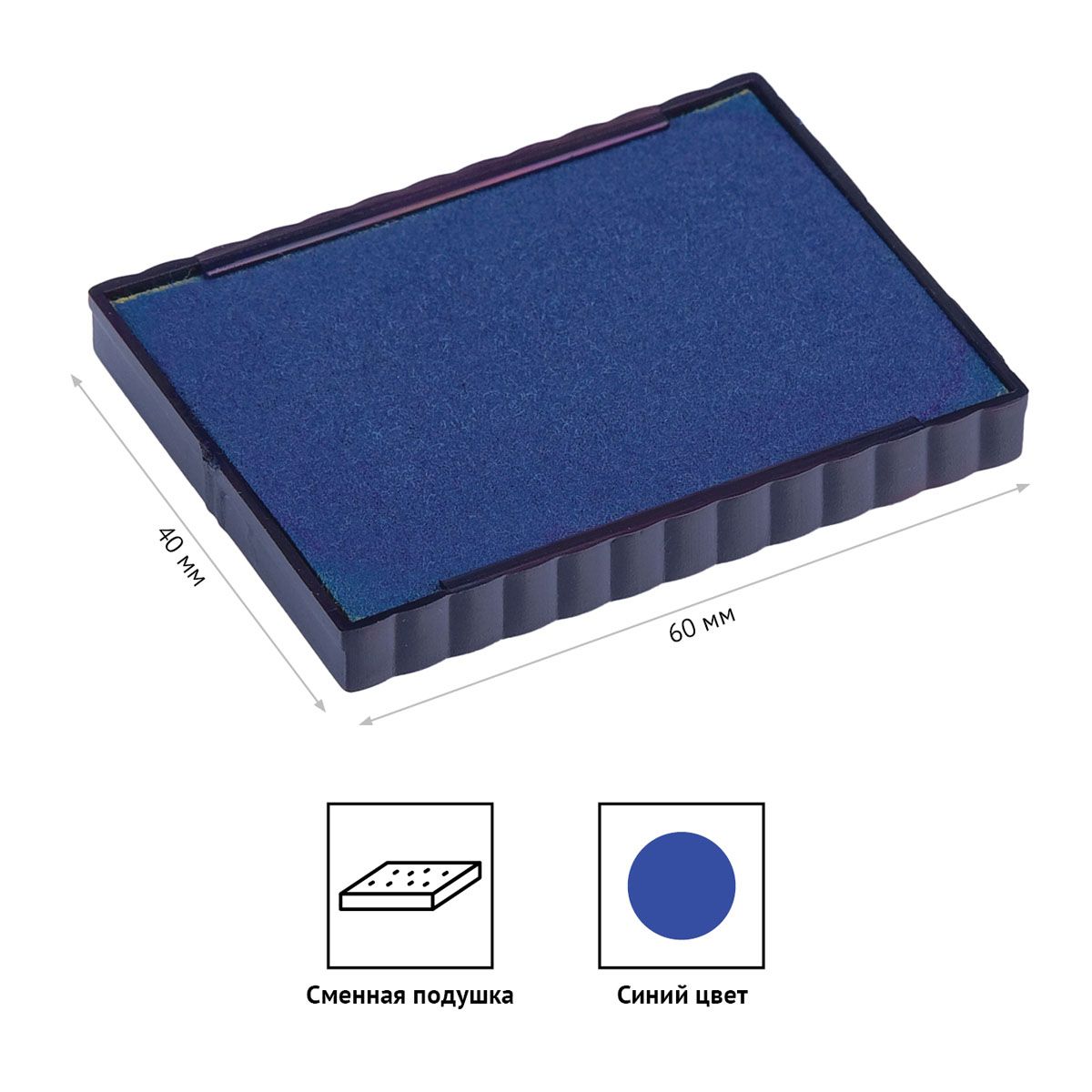 Штемпельная подушка OfficeSpace размером 60×40 мм в пластиковом корпусе, окрашенная в синий цвет, специально разработана для самонаборных датеров BSt 40495, BSt 40491 и BSt 40489. Подушка идёт в картонной упаковке по 10 штук, каждая снабжена индивидуальным штрих-кодом и артикулом, а срок годности составляет 6 лет.