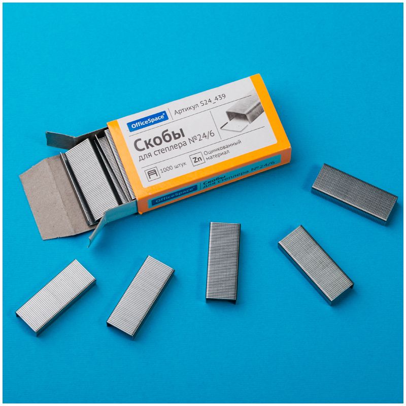Скобы для степлера №24/6 OfficeSpace, оцинкованные, 1000шт., до 30л.
