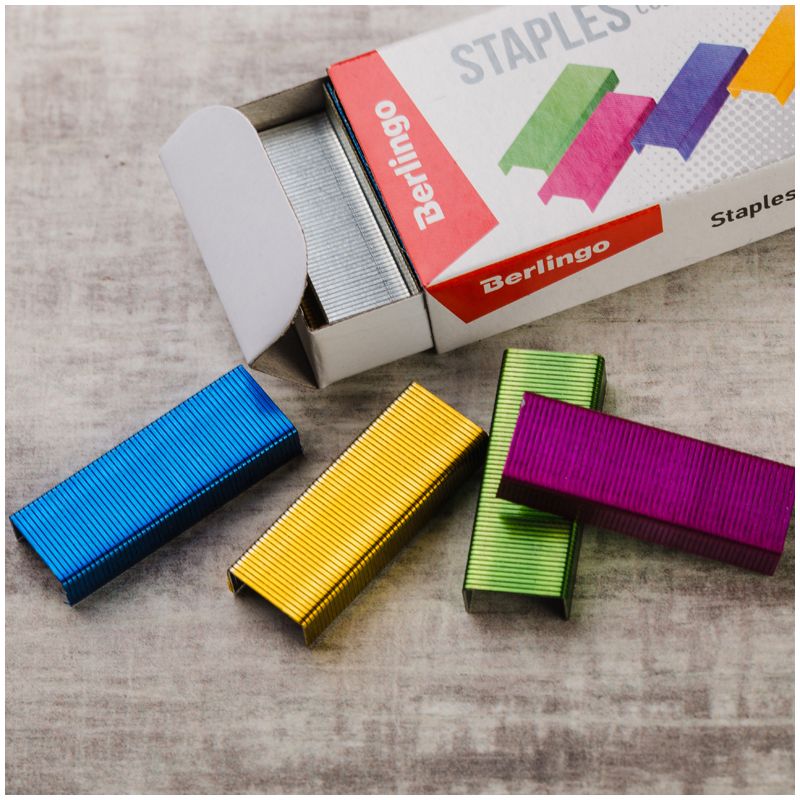 Скобы для степлера №24/6 Berlingo, цветные 1000шт.