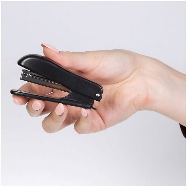 • Мини-степлер "OfficeSpace, черный" легко помещается в ящик стола и подходит для мобильной работы.