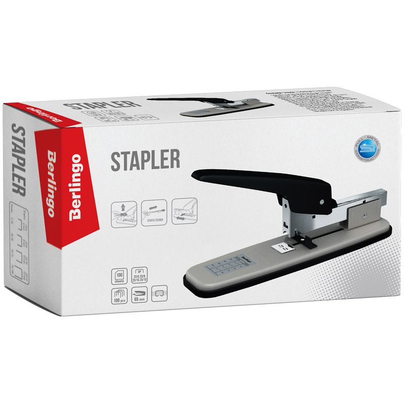 Мощный степлер №23/6, 23/8, 23/10, 23/13 Berlingo "Steel and Style" до 100л., черный/серый