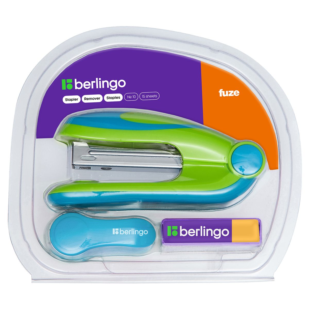 Набор Berlingo "Fuze": степлер №10 до 15л., зеленый; антистеплер; скобы №10; блистер