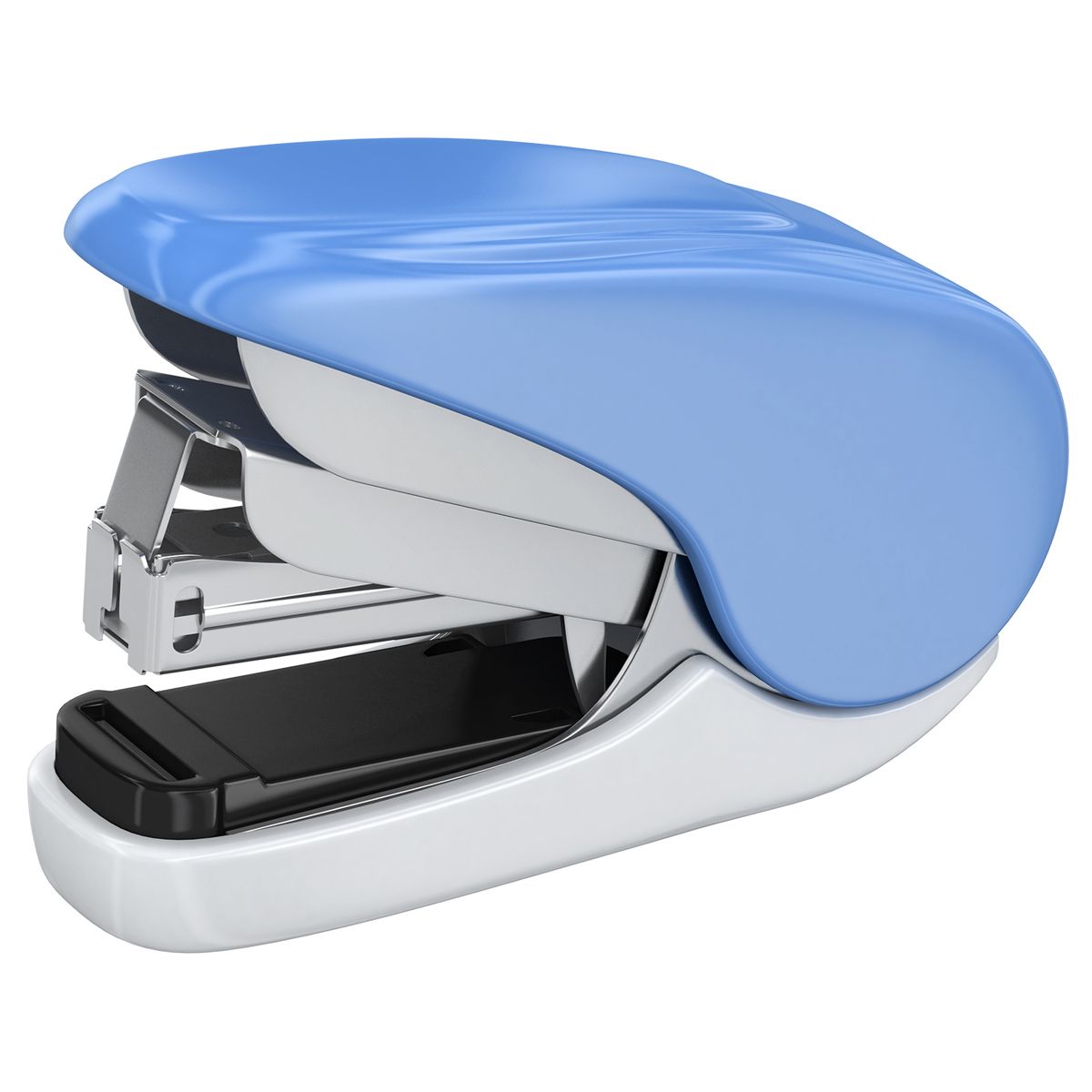 У данной модели пластиковый корпус и металлический механизм подачи скоб. Корпус выполнен в цветах ассорти. Упакован в блистер.