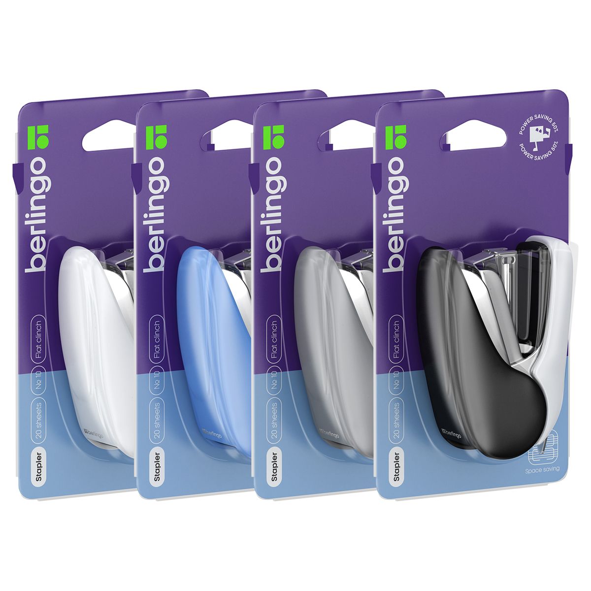 Степлер №10 Berlingo до 20л., пластиковый корпус, энергосберегающий, ассорти, европодвес