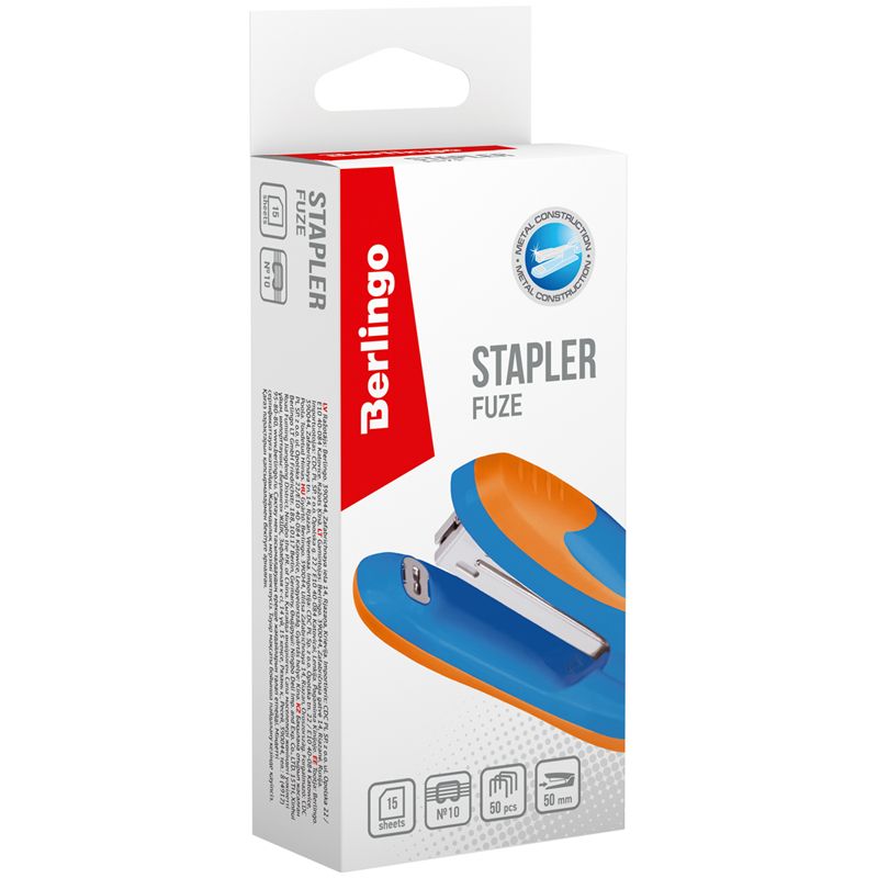 Степлер №10 Berlingo "Fuze" до 15л., 50 скоб, пластиковый корпус, голубой