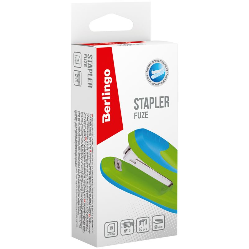 Степлер №10 Berlingo "Fuze" до 15л., 50 скоб, пластиковый корпус, зеленый