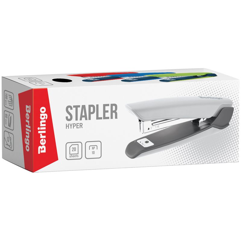 Степлер №10 Berlingo "Hyper" до 20л, 100 скоб, пластиковый корпус, черный
