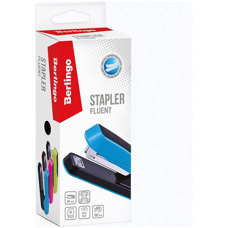 Степлер №24/6, 26/6 Berlingo "Fluent", до 25л., пластиковый корпус, розовый