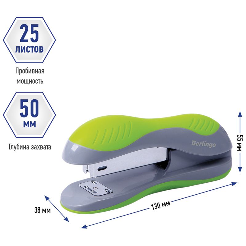 Степлер №24/6, 26/6 Berlingo "Office Soft" до 25л., пластиковый корпус, зеленый