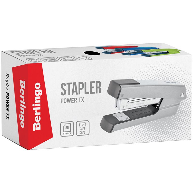 Степлер №24/6, 26/6 Berlingo "Power TX" до 30л., металлический корпус, красный