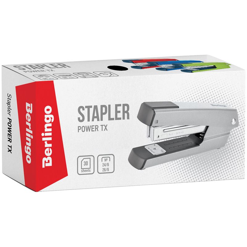 Степлер №24/6, 26/6 Berlingo "Power TX" до 30л., металлический корпус, синий
