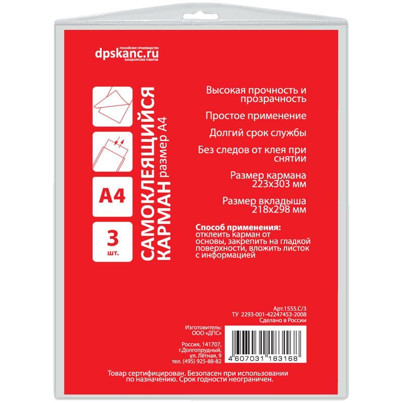 Карман самоклеящийся ДПС, А4 223*303мм, 3шт.