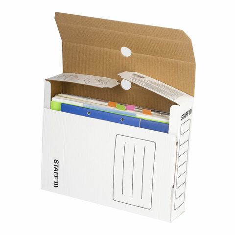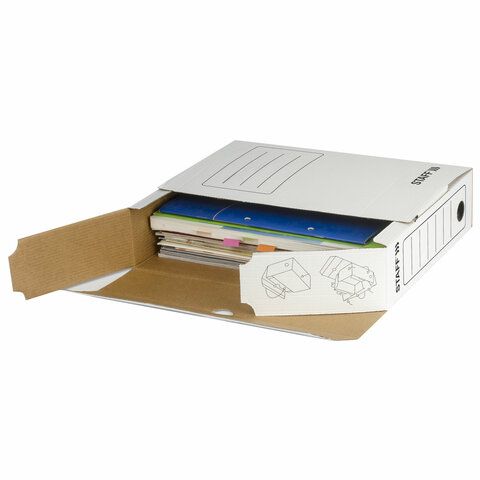 Контейнеры оснащены крышками и боковыми отверстиями для удобного захвата, как у «Стамм Контейнер» , а папки имеют арочные механизмы или завязки, как в «Hatber Папка-Архив А4», для фиксации документов. Некоторые модели, такие как «Attache Архивный короб 120 мм» , включают ручки для переноски.