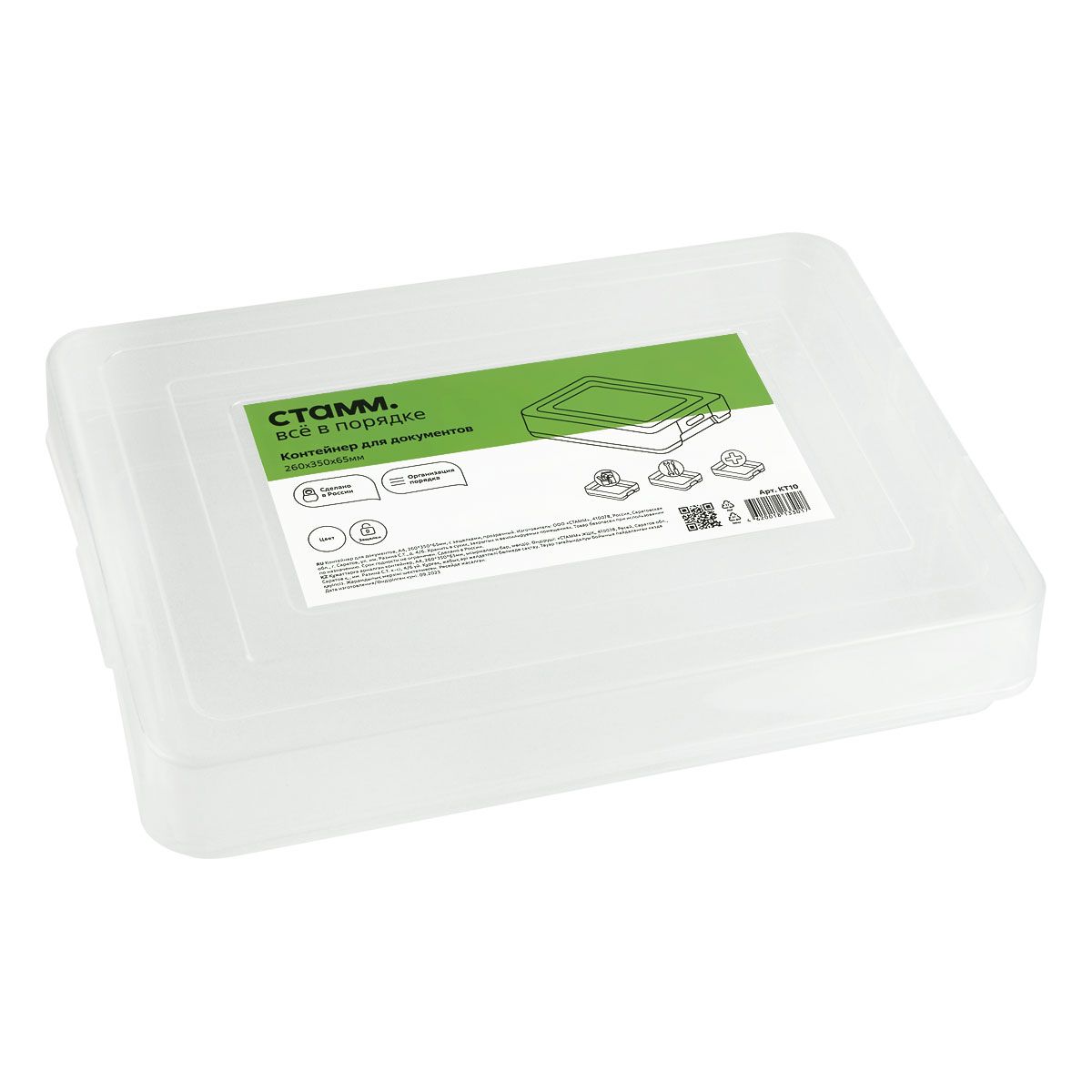 Контейнер для документов СТАММ А4, 260*350*65мм, пластик., с защелками, прозрачный