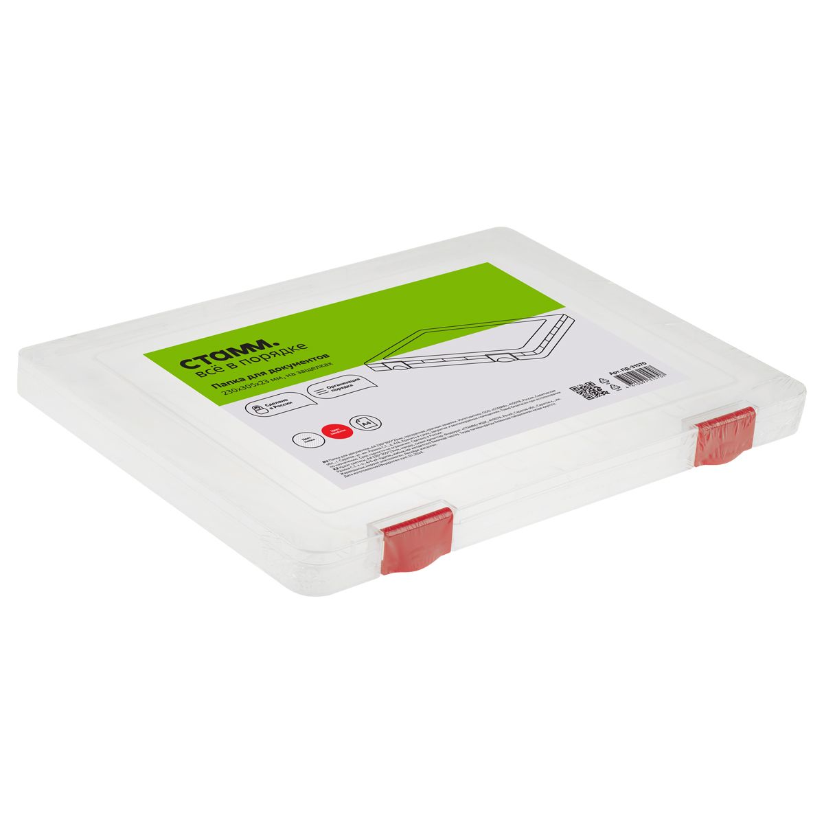 Папка для документов СТАММ А4, 230*305*23мм, пластик., прозрачная, красные защелки