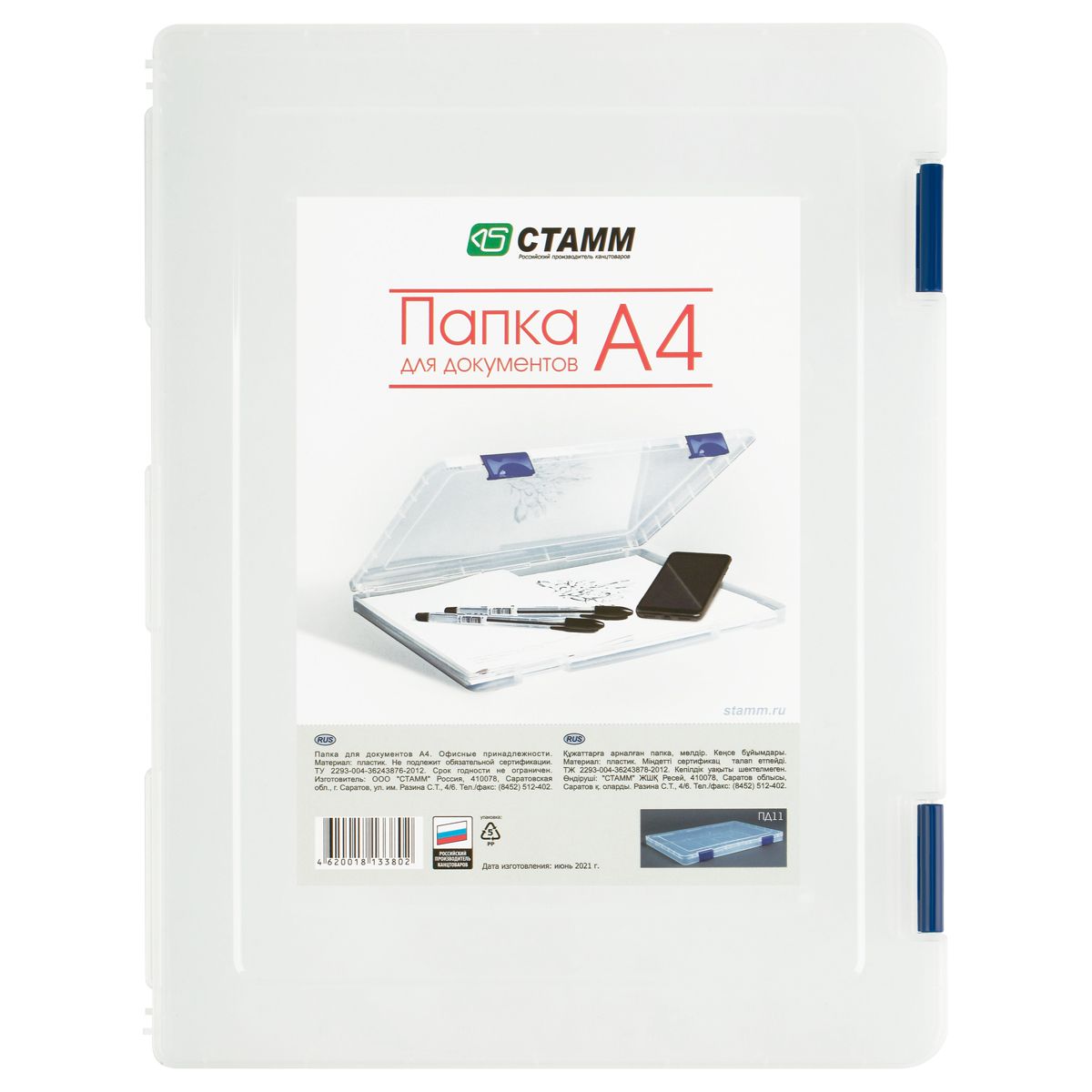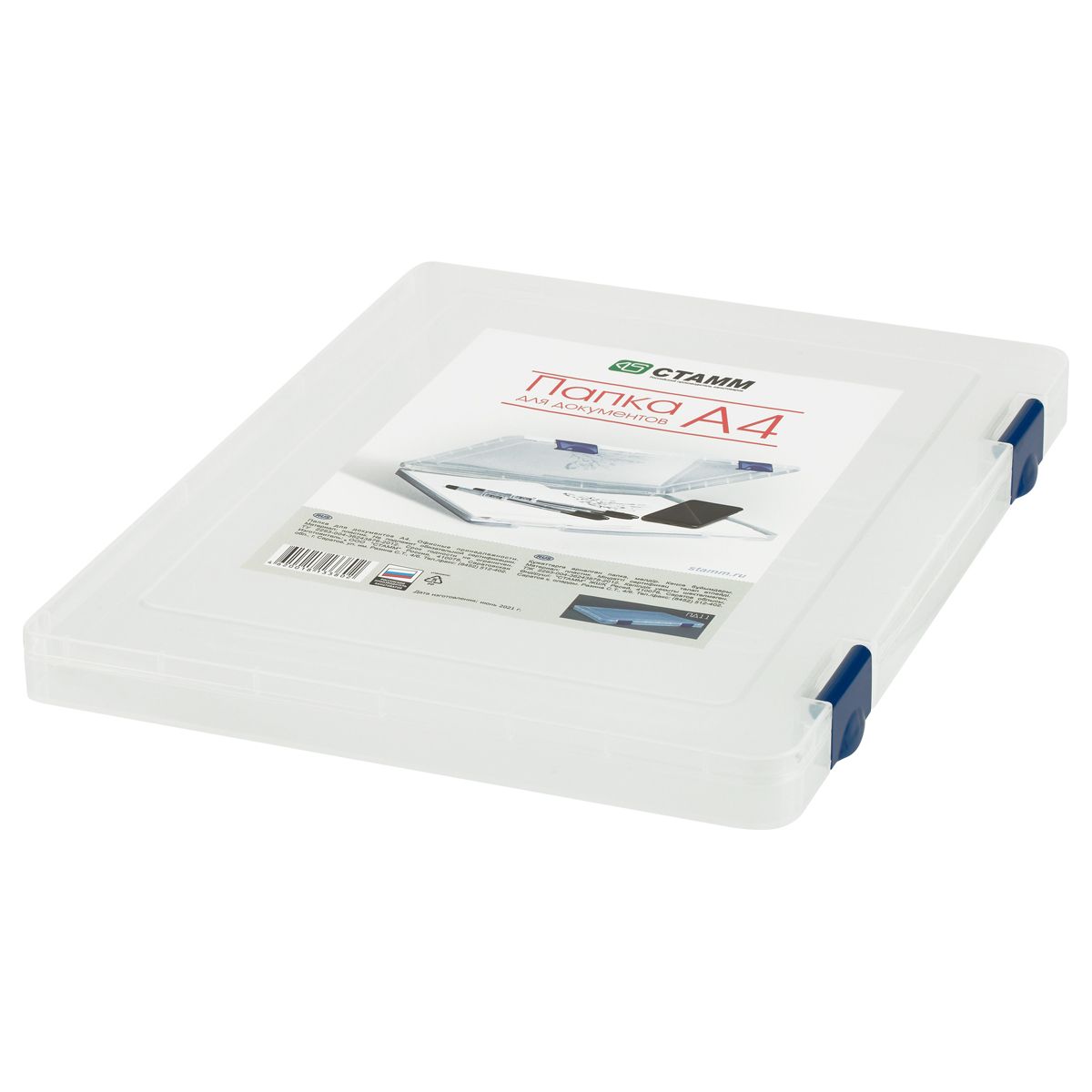 Папка для документов СТАММ А4, 230*305*23мм, пластик., прозрачная, синие защелки
