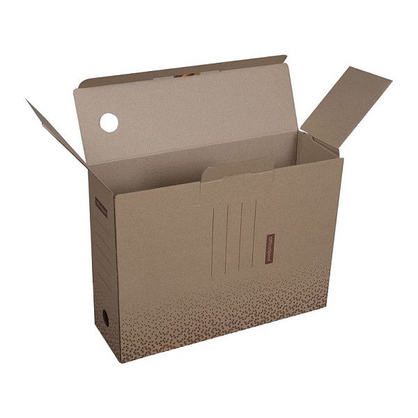 Короба, такие как «InFORMAT Папка-короб 36 мм» , изготовлены из микрогофрокартона с усиленными стенками для долговечности. Пластиковые варианты, например, «Attache Архивный короб 120 мм» , созданы из прочного полипропилена с прозрачными вставками для маркировки.