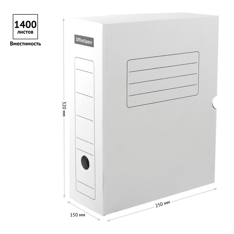 Короб архивный с клапаном OfficeSpace, микрогофрокартон, 150мм, белый, до 1400л.