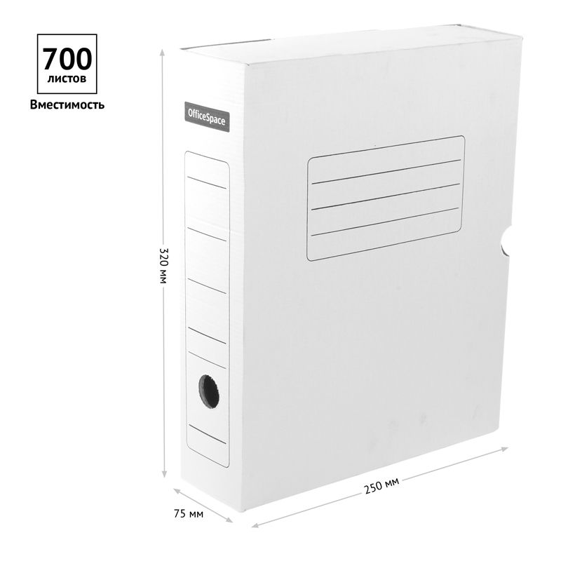 Короб архивный с клапаном OfficeSpace, микрогофрокартон, 75мм, белый, до 700л.