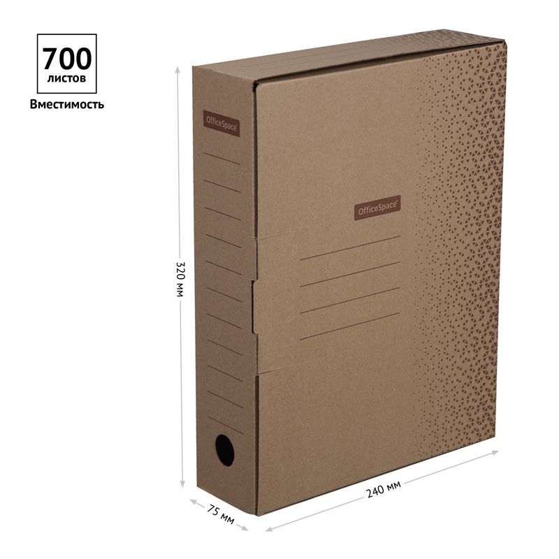 Короб архивный с клапаном OfficeSpace "Standard" плотный, микрогофрокартон, 75мм, бурый, до 700л.