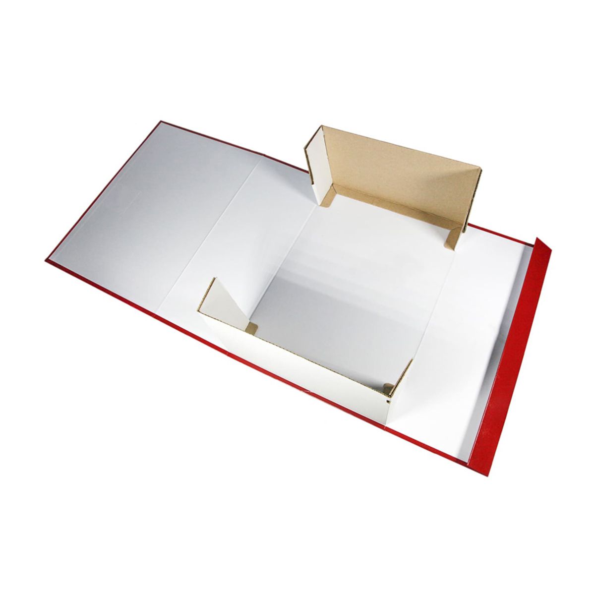 с помощью двух хлопчатобумажных завязок. Короб вмещает до 500 листов стандартной плотности, ширина корешка – 70 мм. Позволяет надёжно хранить документы как в вертикальном, так и в горизонтальном положении.