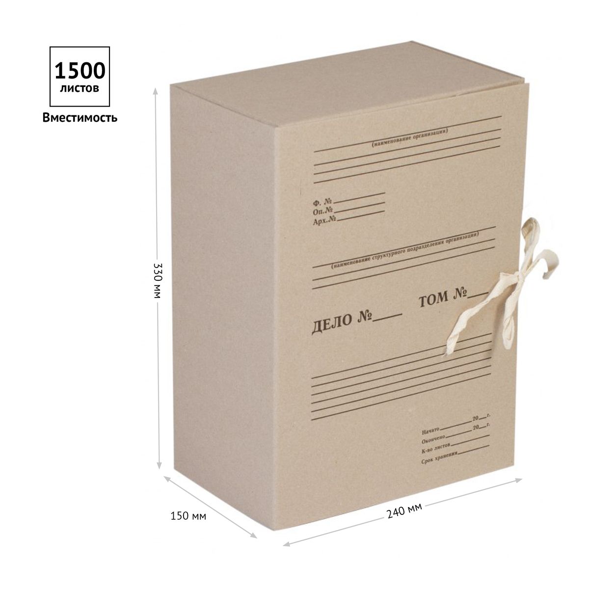Короб архивный с завязками OfficeSpace, разборный, 150мм, клапан из переплетного картона, до 1500л.